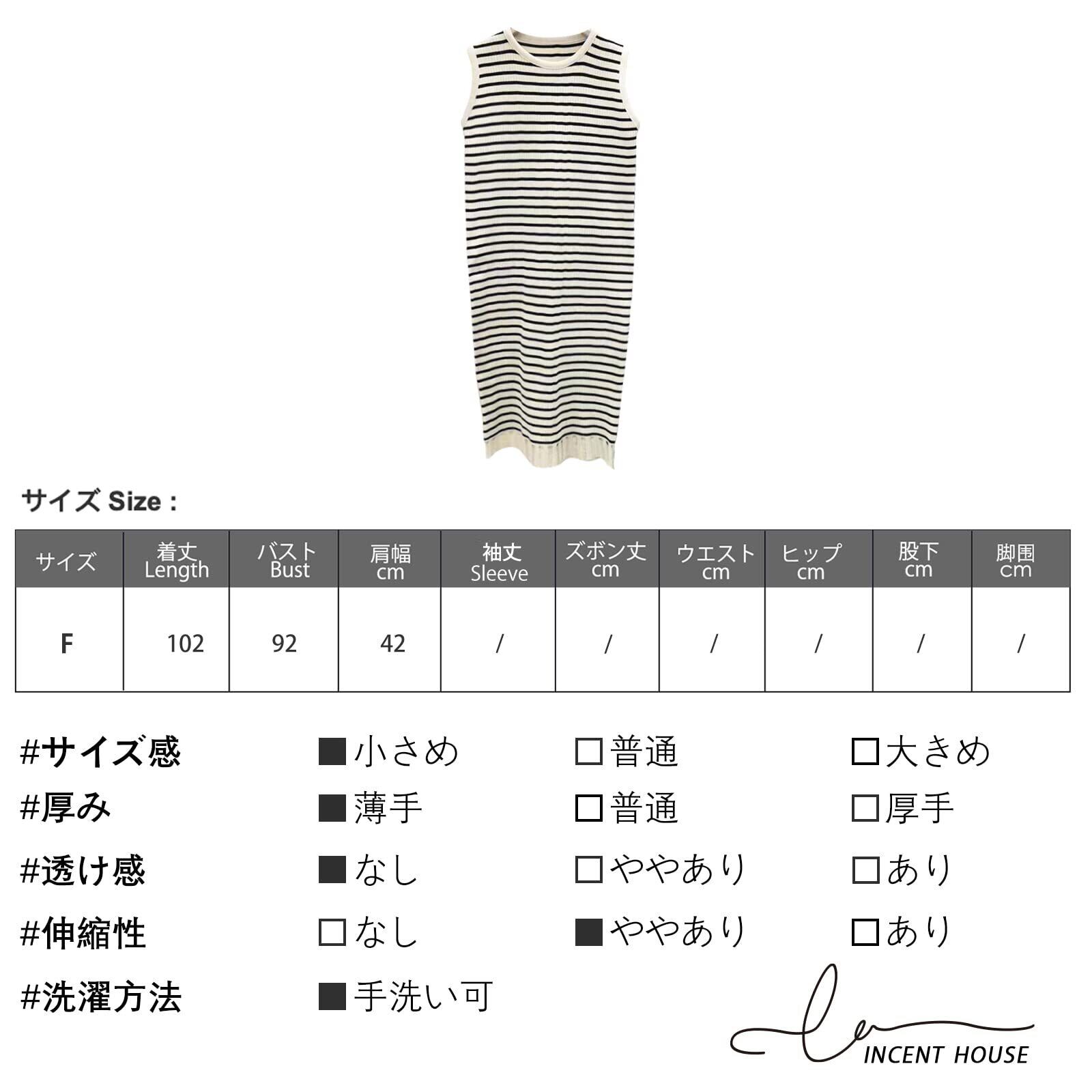 [Vincent house] ニットワンピース 薄手 大きいサイズ 春 夏 レディース ドレス ノースリーブ ひざ丈 セーター ブラック 無地 ストライプ シンプル エレガント きれいめ フォーマル 通勤