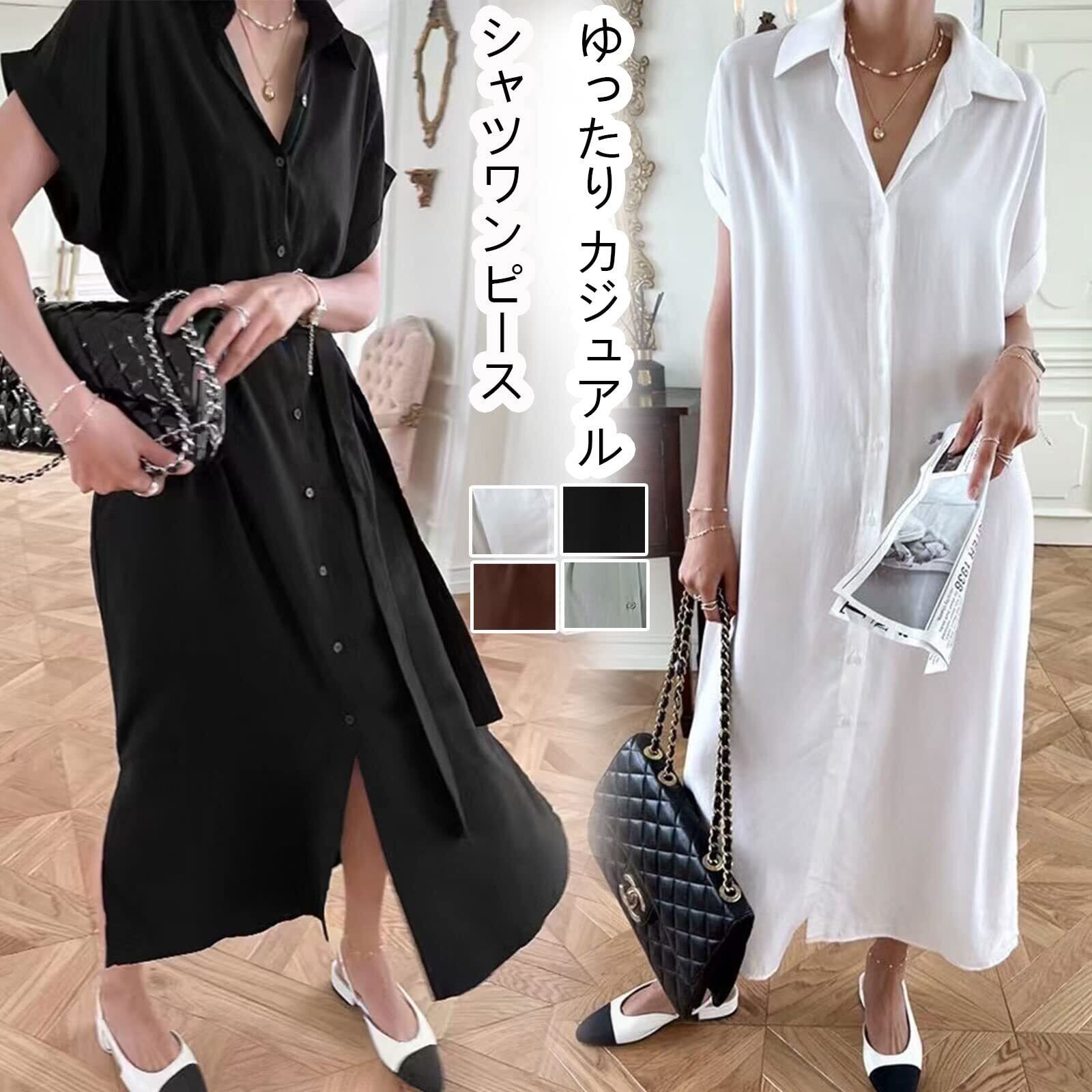【数量限定】[7-livehouse] ワンピース レディース ロングワンピース 半袖 シャツワンピース 春 夏 ベルト付き 立ち襟 ポケット付き 大きいサイズ ゆったり カジュアル シンプル 日常 | BOSSO