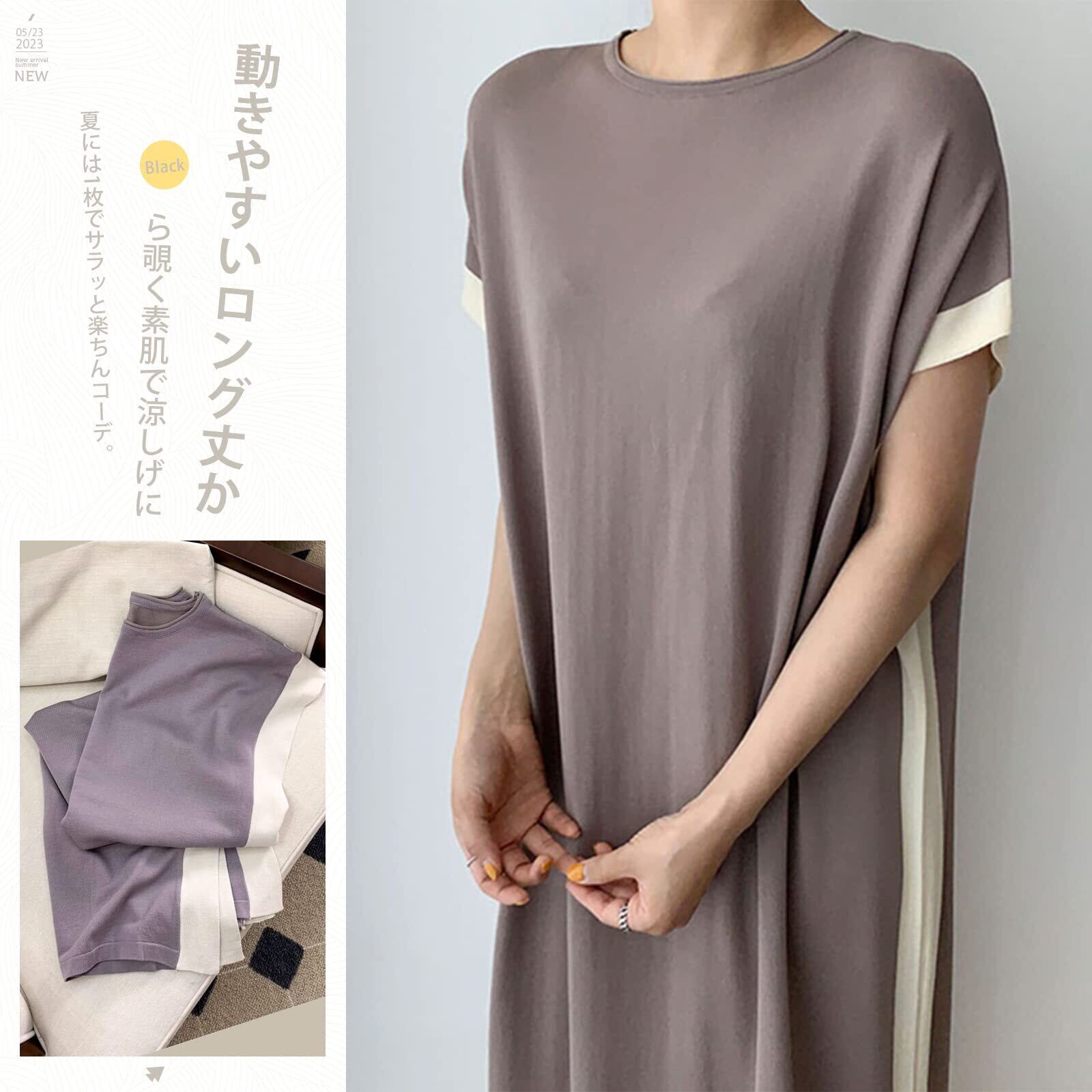 [Vincent house] ワンピース レディース 夏服 半袖 ロング丈 サイドスリット ゆったり 体型カバー 大きいサイズ 着痩せ 大人 上品 カジュアル きれいめ おしゃれ 通勤 日常着