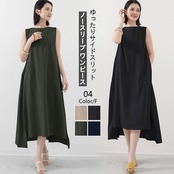【特価セール】[7-livehouse] ワンピース レディース ロング丈ワンピース ノースリーブ ラウンドネック ポケット付き サイドスリット 大きいサイズ カジュアル ゆったり 体型カバー お洒落 可愛い 無袖 無地 夏服 着痩せ 通勤 | BOSSO