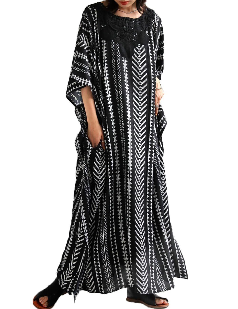 雰囲気たっぷりのアフリカン柄にレースを施して女性らしさをプラス。モノトーンで大人っぽさも。ゆったりとしたサイジングはこなれたお洒落コーデに仕上げてくれる。さらりと着るだけで主役になれるレディースワンピース