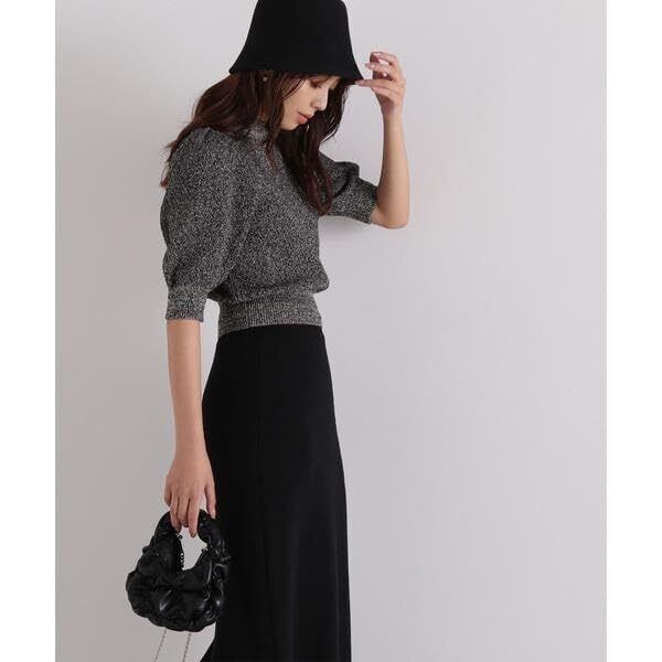 表情のあるメランジ糸を使用した着映えするニットトップスと、バックスリットを入れた女性らしいナロースカートのセットアイテム。トップスは甘くなりすぎない、程よいボリュームのパフスリーブにこだわり、ナロースカートは単品でも使いやすいシンプルなデザインに仕上げました。単品はもちろん、セットでニットワンピース風の着こなしがレディライクでおすすめ。今の季節からも着られる秋先取りのニットアップです。