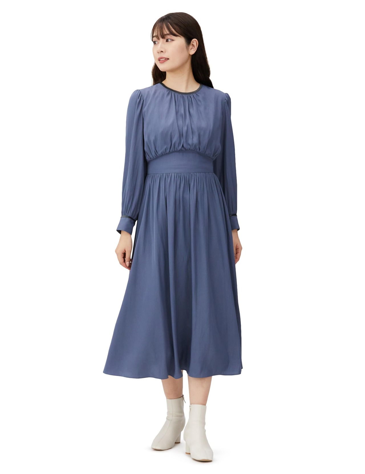 [ナチュラルビューティーベーシック] カジュアルドレス ベロアライン割繊ワンピース レディース