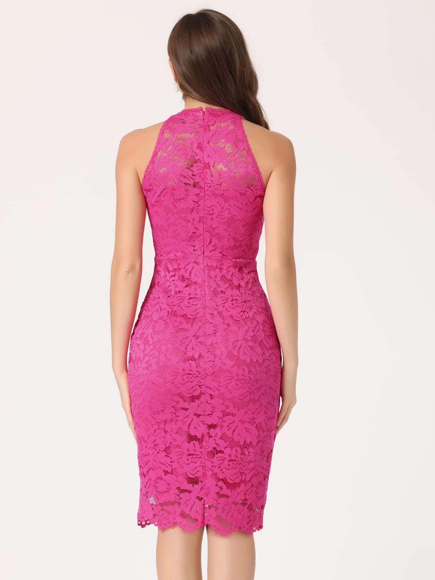[Allegra K] レースドレス ボディコンワンピース ホルターネック ノースリーブ カクテル シース エレガント レディース ホットピンク M