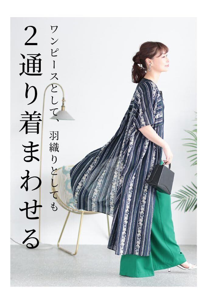 1枚でワンピースとしてもボタンを開けて羽織りとしても着まわせます。