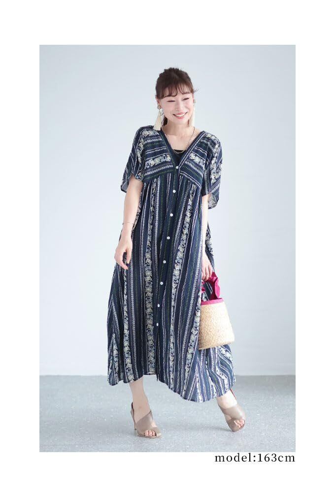 [sawa á la mode] 涼しげ に 流れる 花 模様 の コットン ロング ワンピース レディース ファッション ワンピース 羽織り ロング丈 花