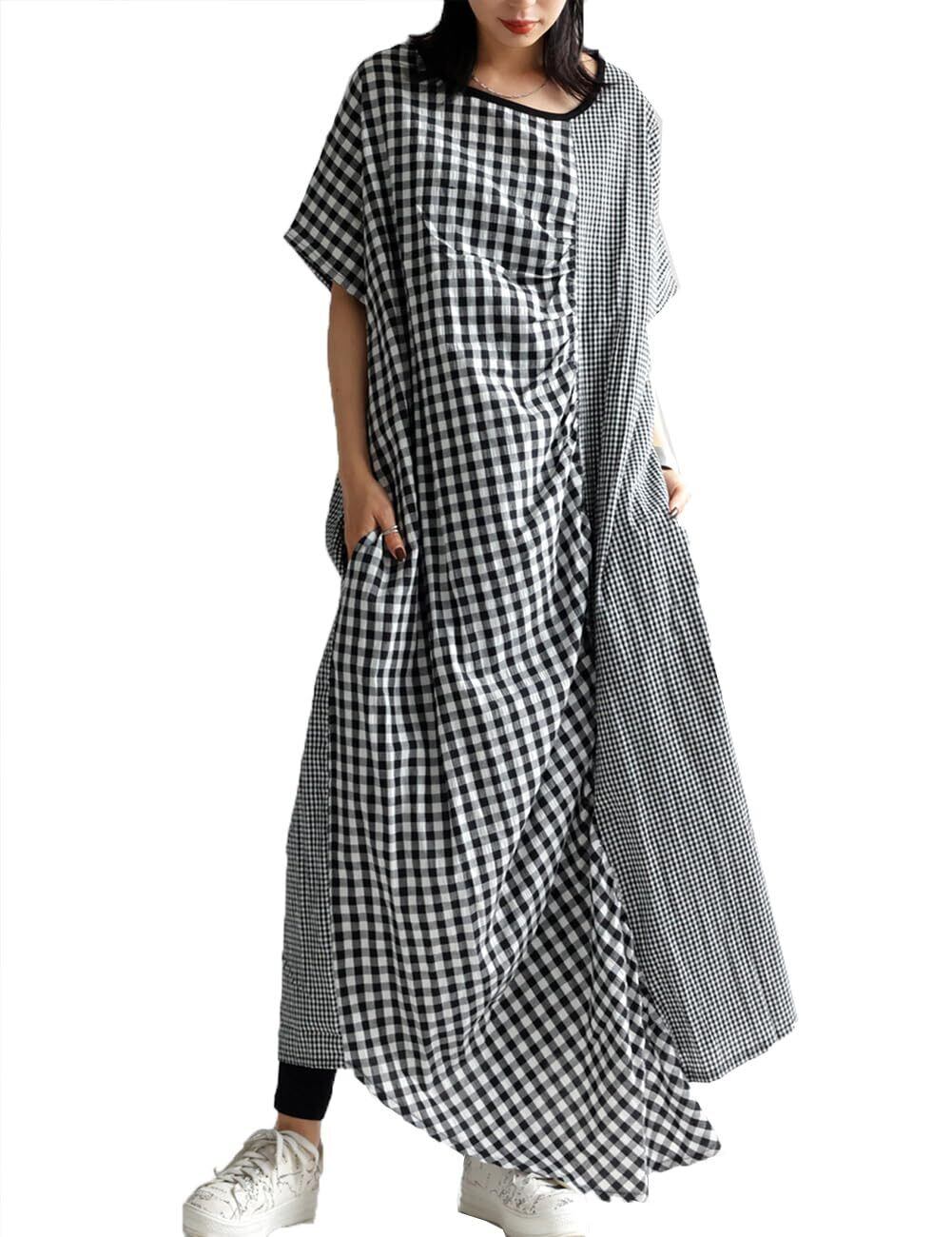 大人可愛いをツクル 優しい肌触りの綿100%生地『アシメデザインチェック柄ワンピース』
