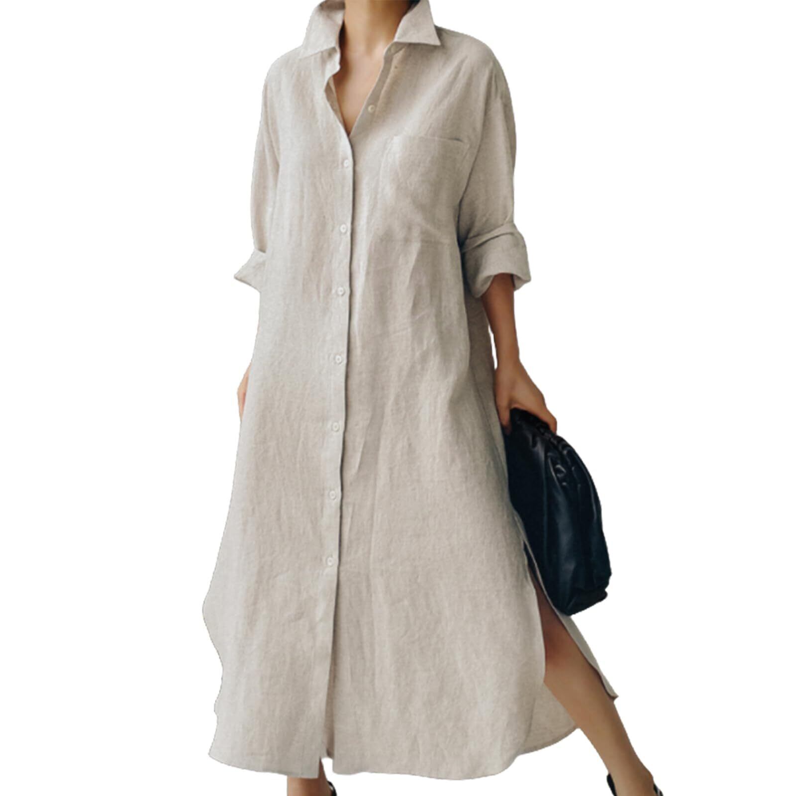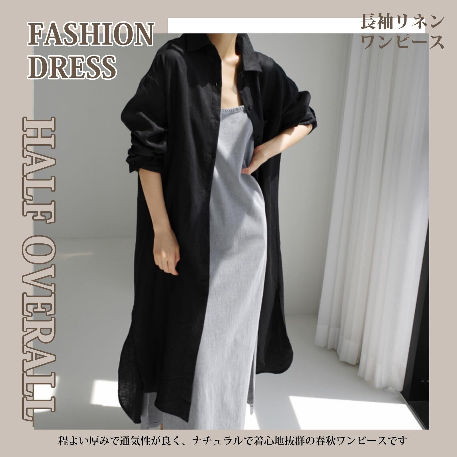 【2022最新】[7-livehouse] ワンピース レディース シャツワンピース 長袖 リネンワンピース 大きいサイズ マキシワンピ きれいめ ゆったり 無地 綿麻 体型カバー 着痩せ 前開 お出かけ 通勤 デート 春 秋 冬 | BOSSO