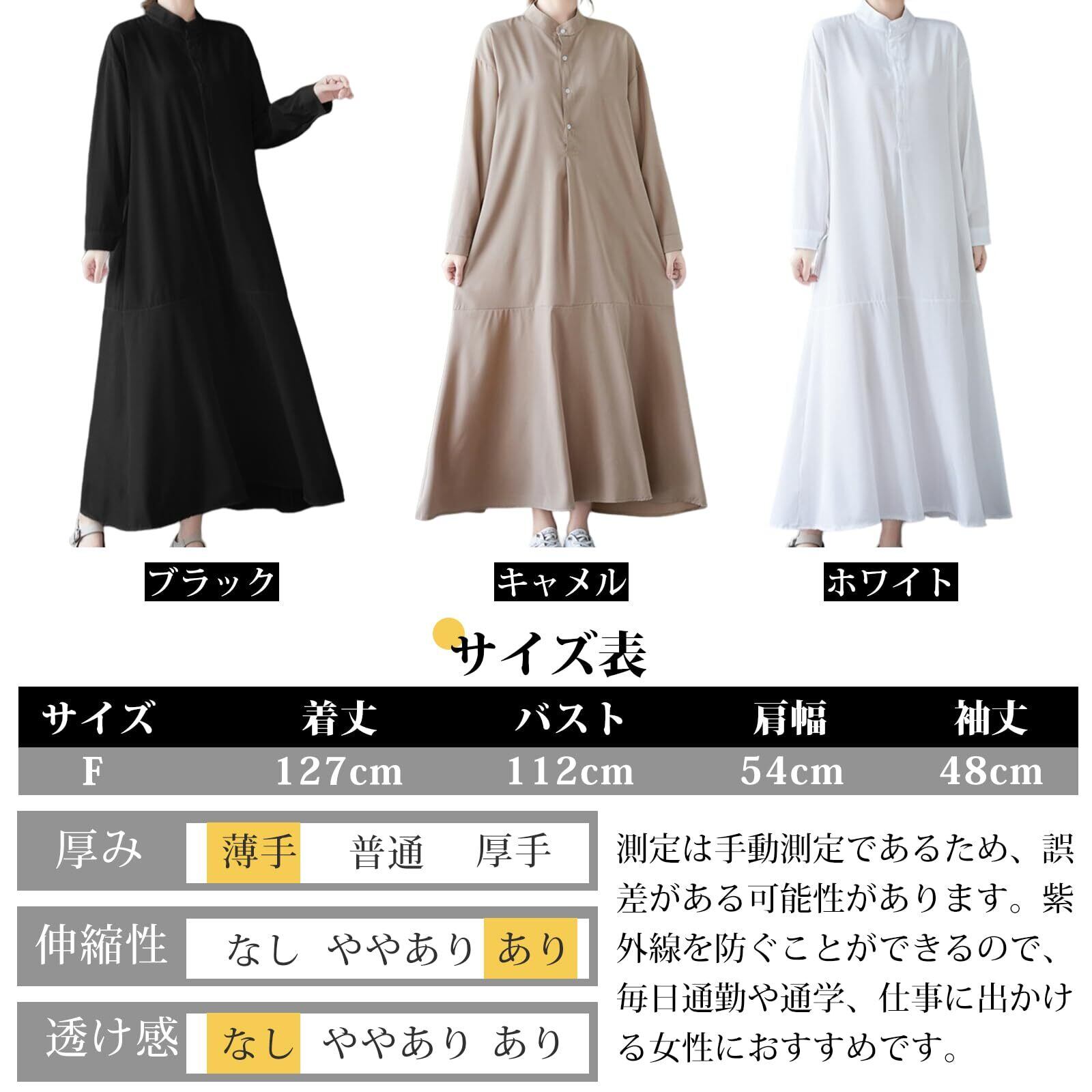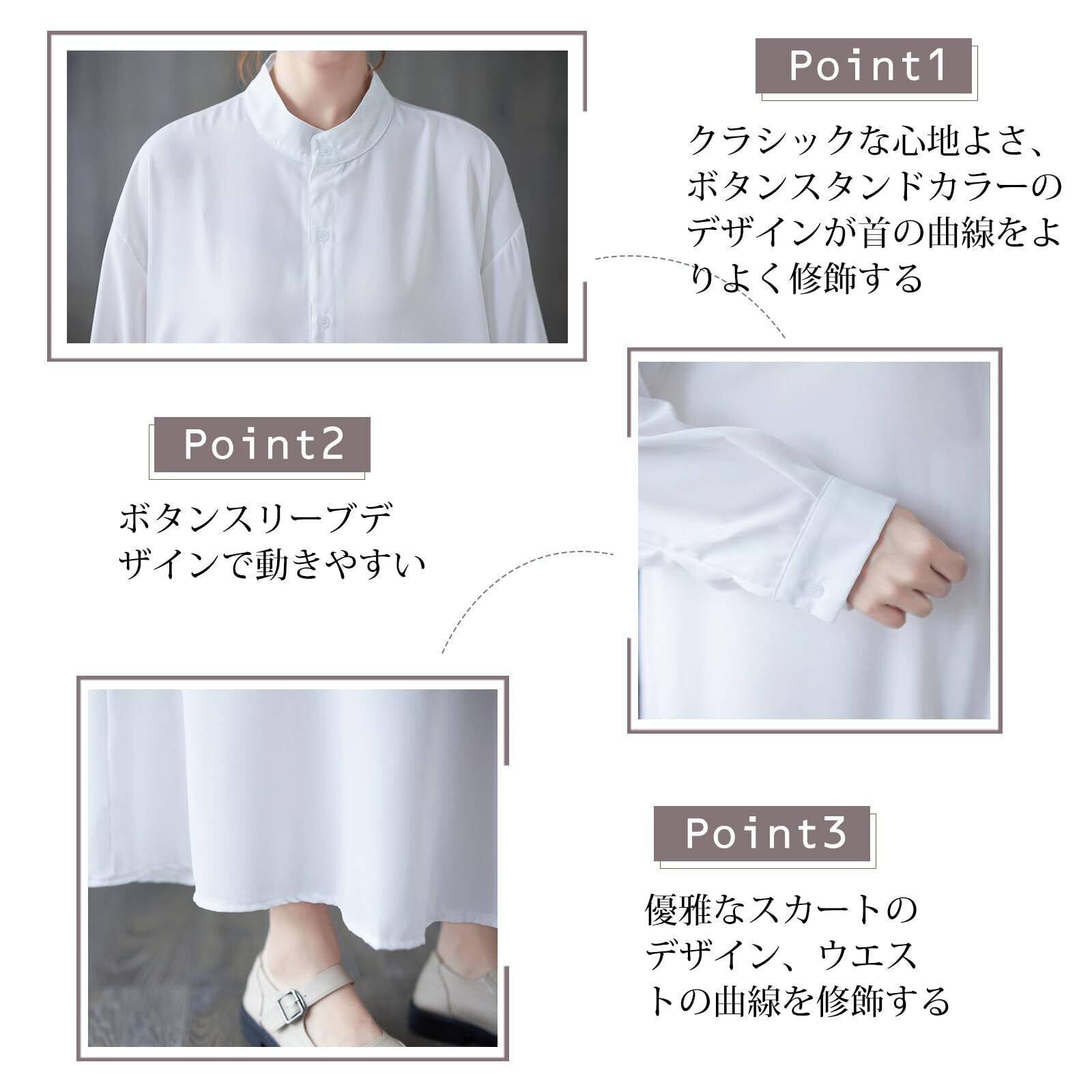 [7-livehouse] ワンピース レディース シャツワンピース ロングワンピース 長袖 立ち襟 前開き 体型カバー Aライン ゆったり 無地 上品 おしゃれ デート カジュアル オフィス 通勤 春 秋 冬
