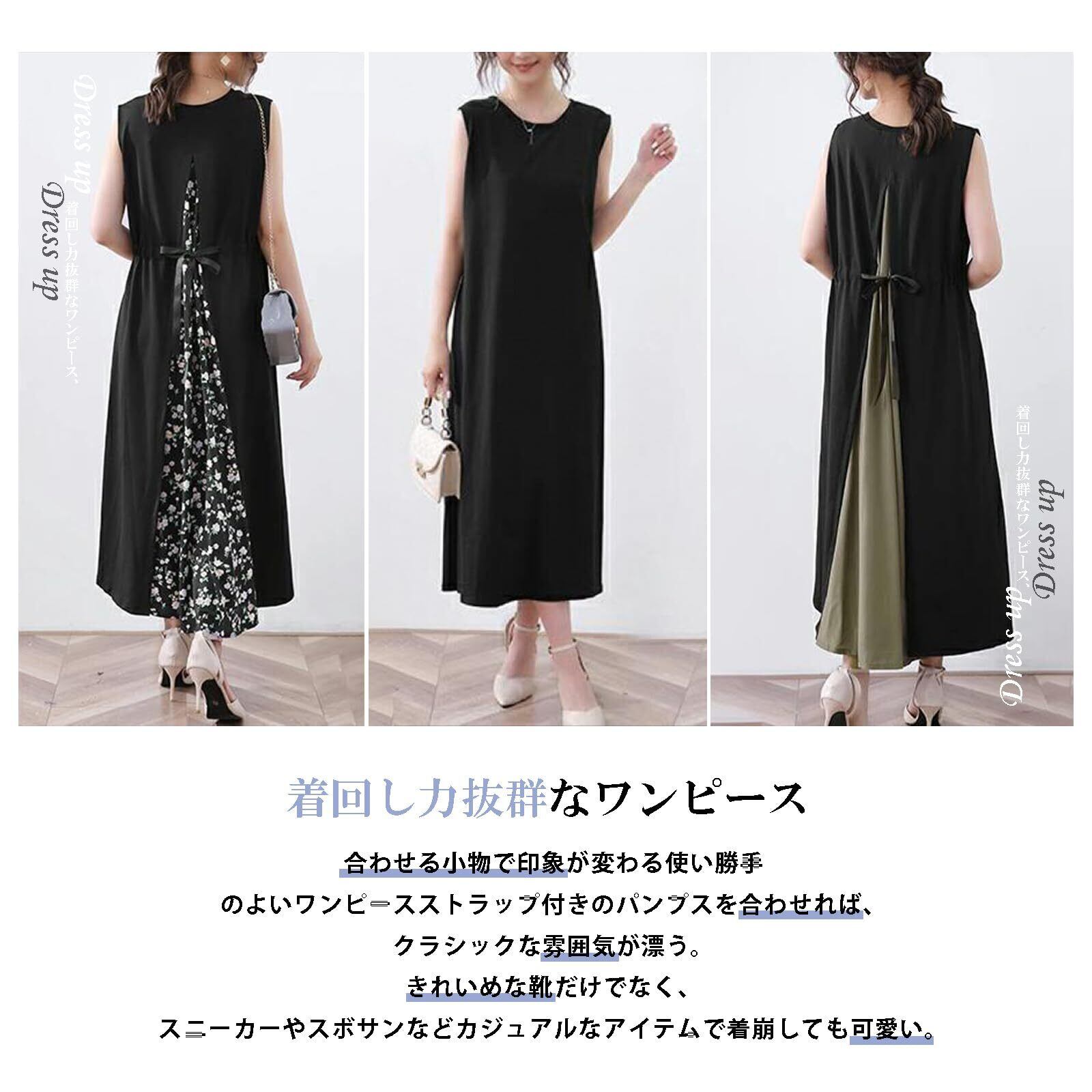 【2022最新】[MEME XTRA] メメエクストラ ワンピース レディース ノースリーブ 切り替え ロングワンピース 夏 Aライン 大きいサイズ 上品 カジュアル きれいめ 韓国 オフィス ゆったり 夏服 ロング 花柄 かわいい マキシ丈 着痩せ 通勤 体型カバー | BOSSO
