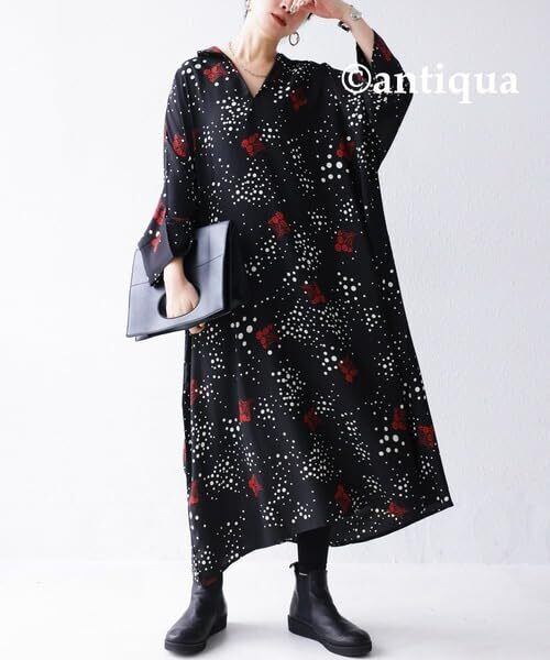 [antiqua] [アンティカ] フラワードット ワンピース レディース ロング 柄 KE-02986