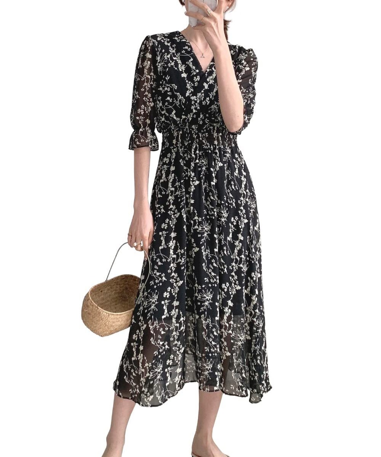 [three Joy] 【ラスト1点!! 在庫限り】ロングワンピース 花柄 きれいめ ゆったり カジュアル ワンピース 春 夏 秋 レディース