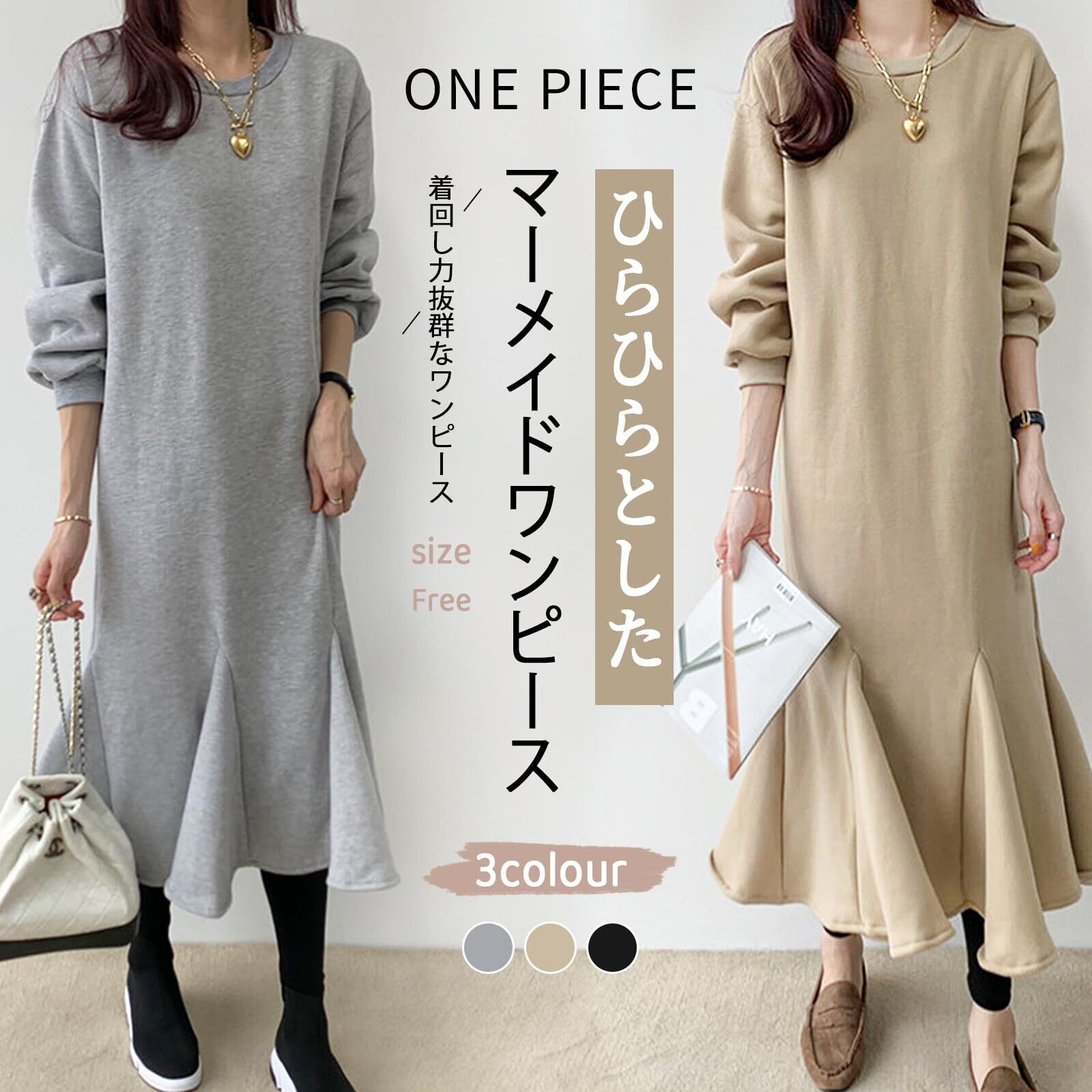 [MEME XTRA] メメエクストラ ワンピース レディース 長袖 ロングワンピース 秋 冬 マーメイド ロング 無地 Aライン 大きいサイズ ミモレ丈 ゆったり 上品 カジュアル きれいめ 秋服 かわいい オフィス 着痩せ 体型カバー 韓国 通勤
