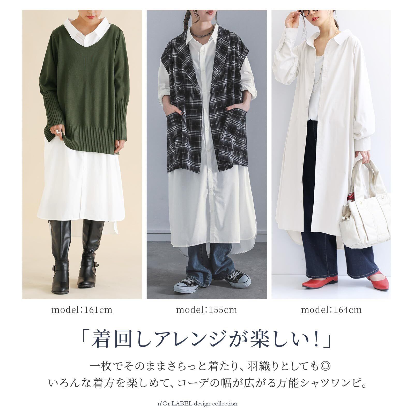 [n'OrLABEL] オシャレウォーカー【シンプルシャツワンピース】ワンピース レディース ロングワンピース シャツワンピース 長袖 マキシワンピース ボタン付 無地 Aライン 体型カバー 着痩せ 大きいサイズ ゆったり お洒落 お出かけ wan0725
