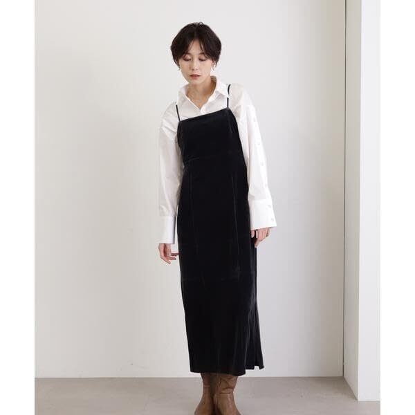 秋冬のワードローブに迎えたい!クラシカルムード抜群なベロアキャミワンピースは、後ろ姿を印象づけてくれるカットアウトとリボンがアクセント。縦のシルエットを強調しつつ、サイドスリットを入れて足さばき良く仕上げています。華奢なショルダーストラップは長さ調節可能。インに薄手のハイネックトップスやブラウスなどもレイヤードできるので、着こなしの幅を広げてくれます。