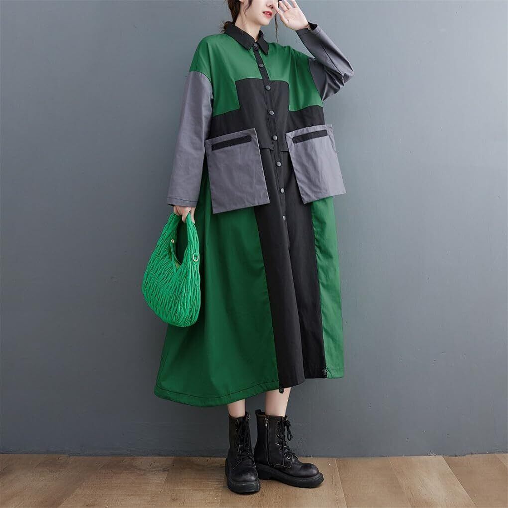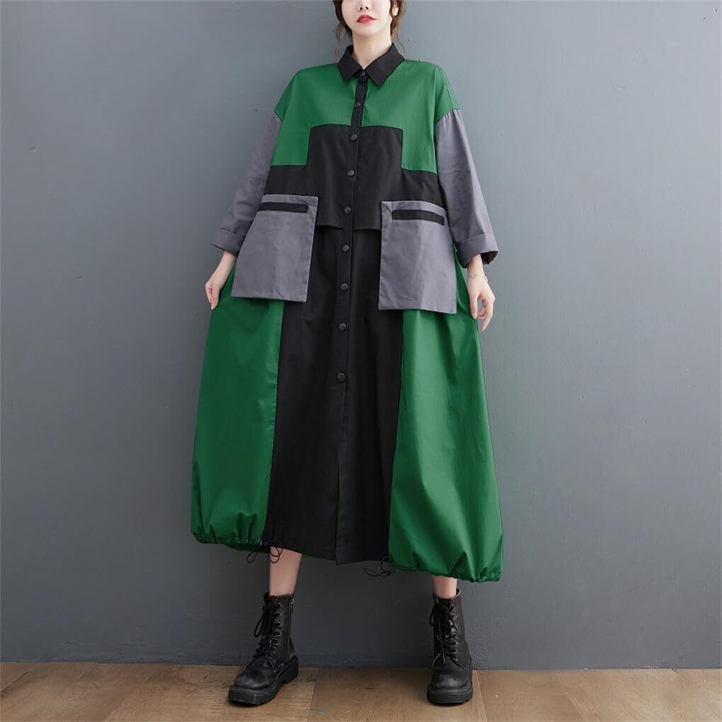 【2022最新】[もうほうきょう] シャツワンピース レディース ロングワンピース 長袖 ミモレ丈 ワンピース トレンチコート 体型カバー 切り替え 春秋 おしゃれ カジュアル 通勤 普段着 2色 | BOSSO