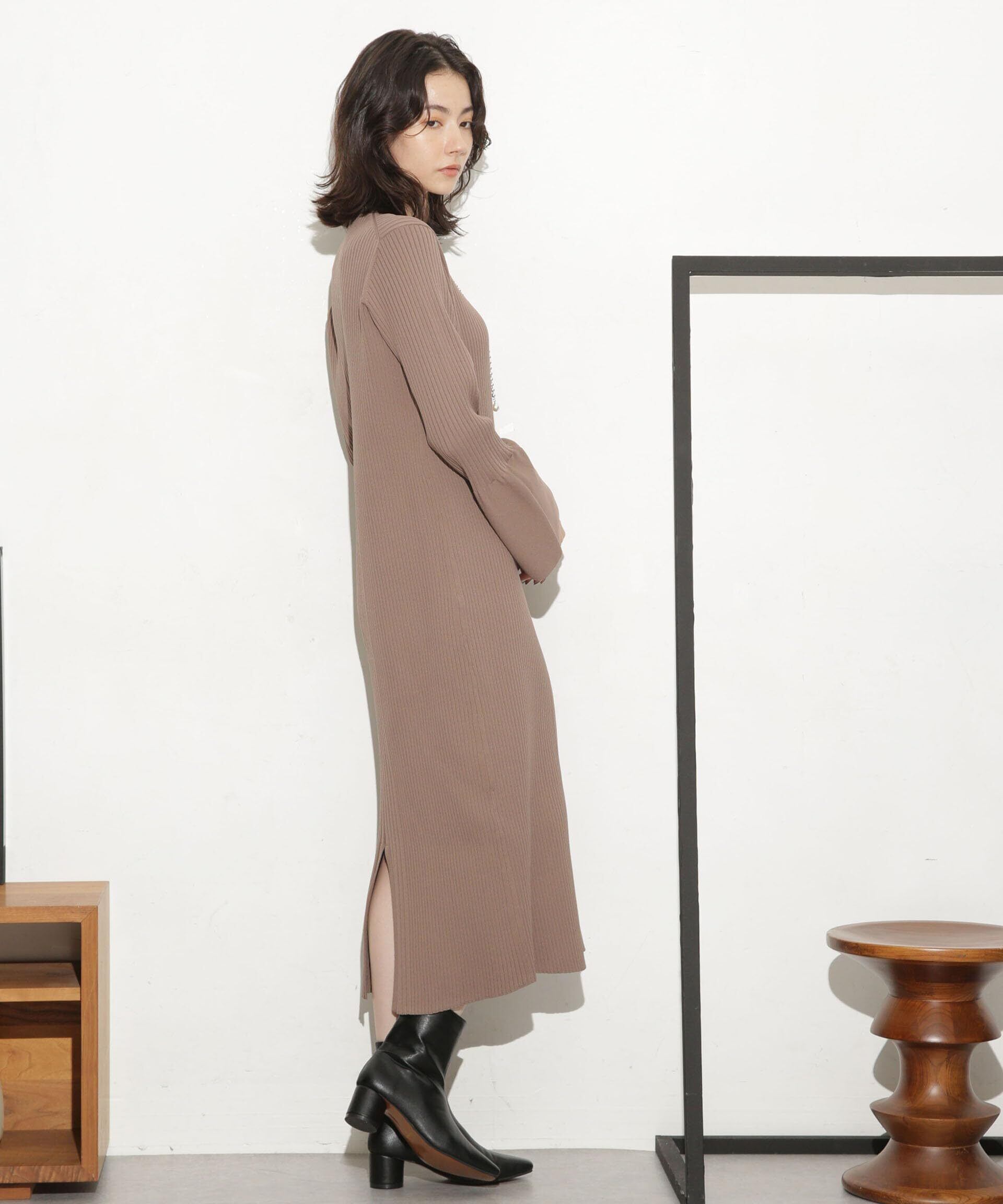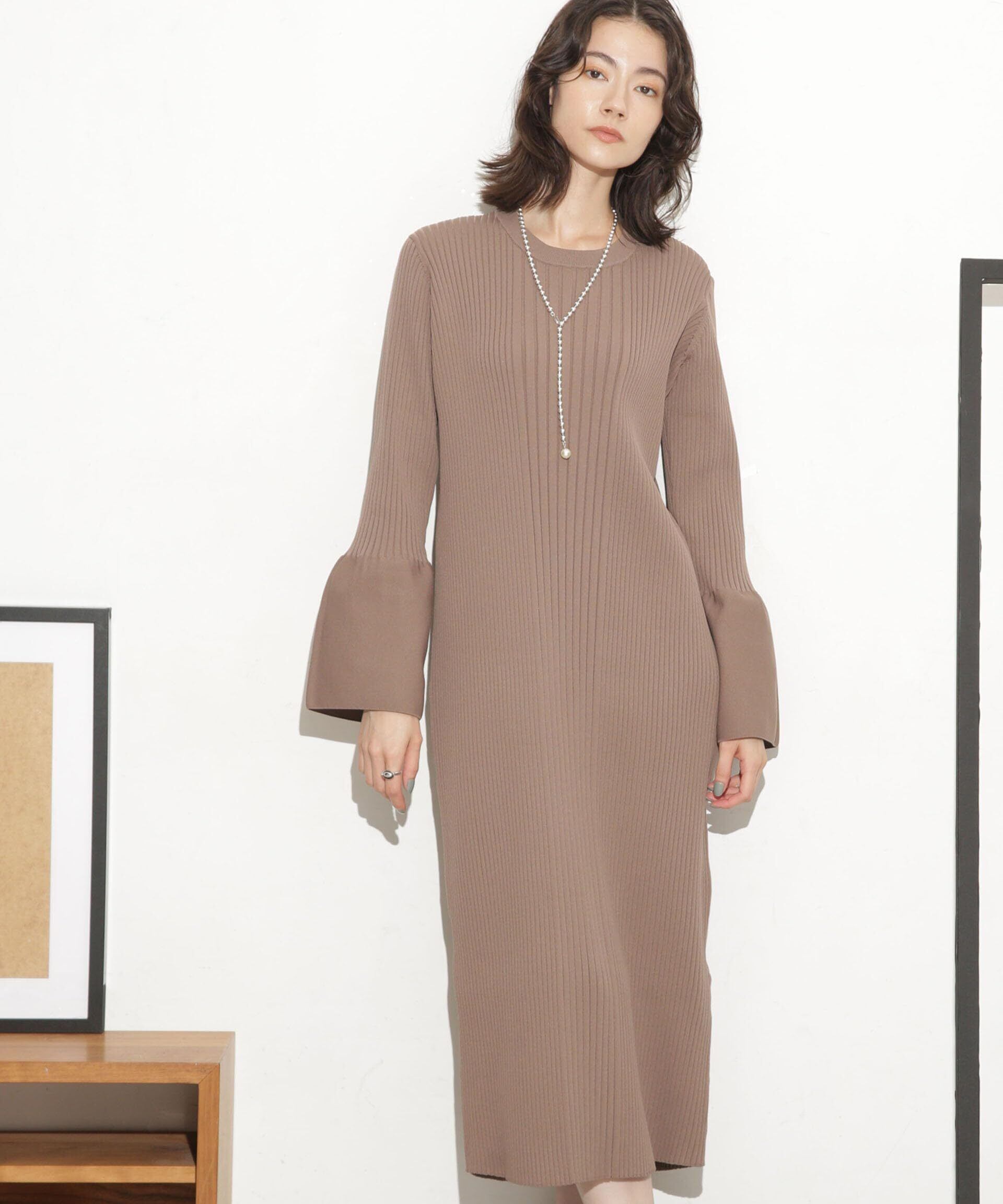 [ナノ・ユニバース] フレアスリーブリブニットワンピース