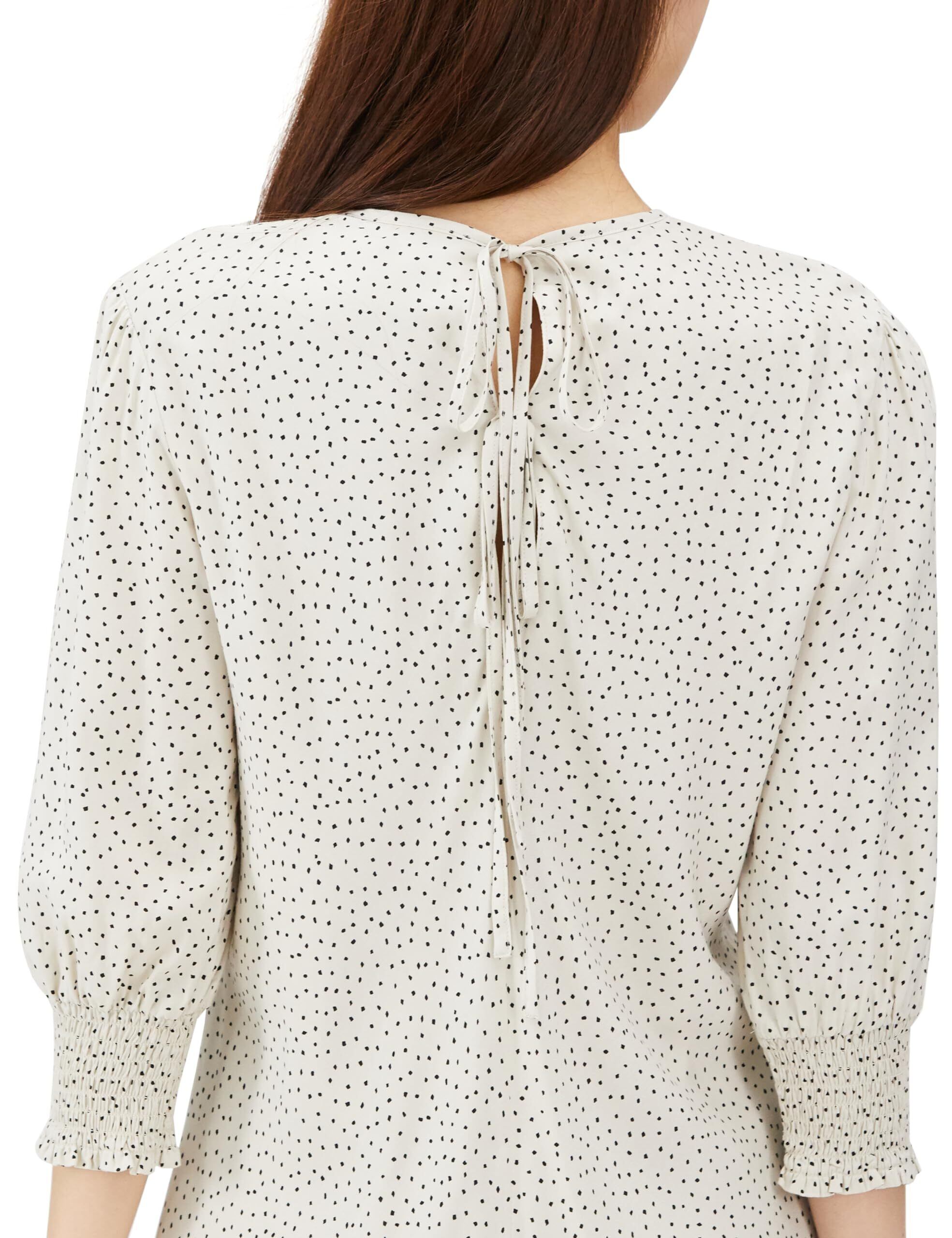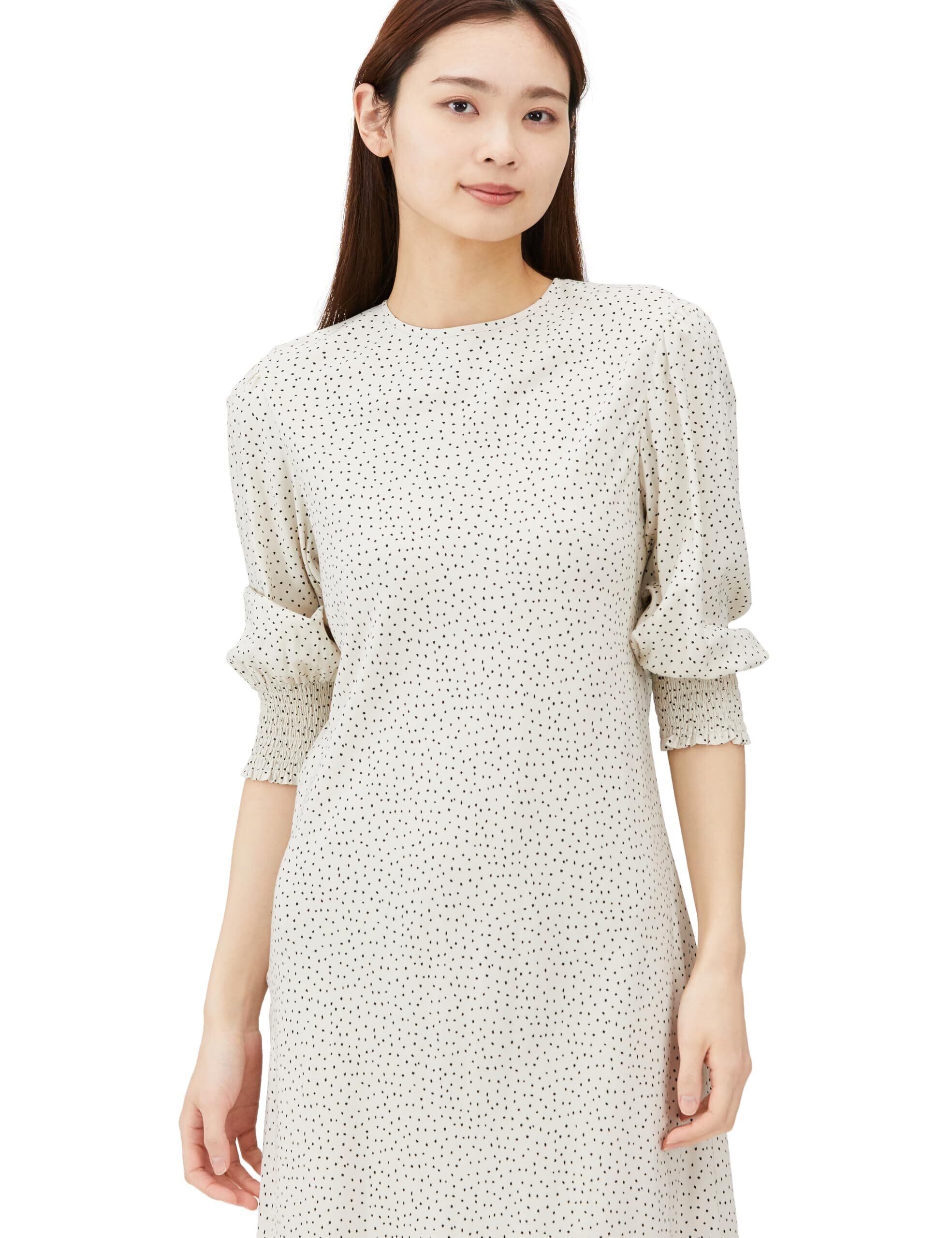 ランダム細かなドット柄でつるんとした肌さわり、着心地がいい素材を使用。