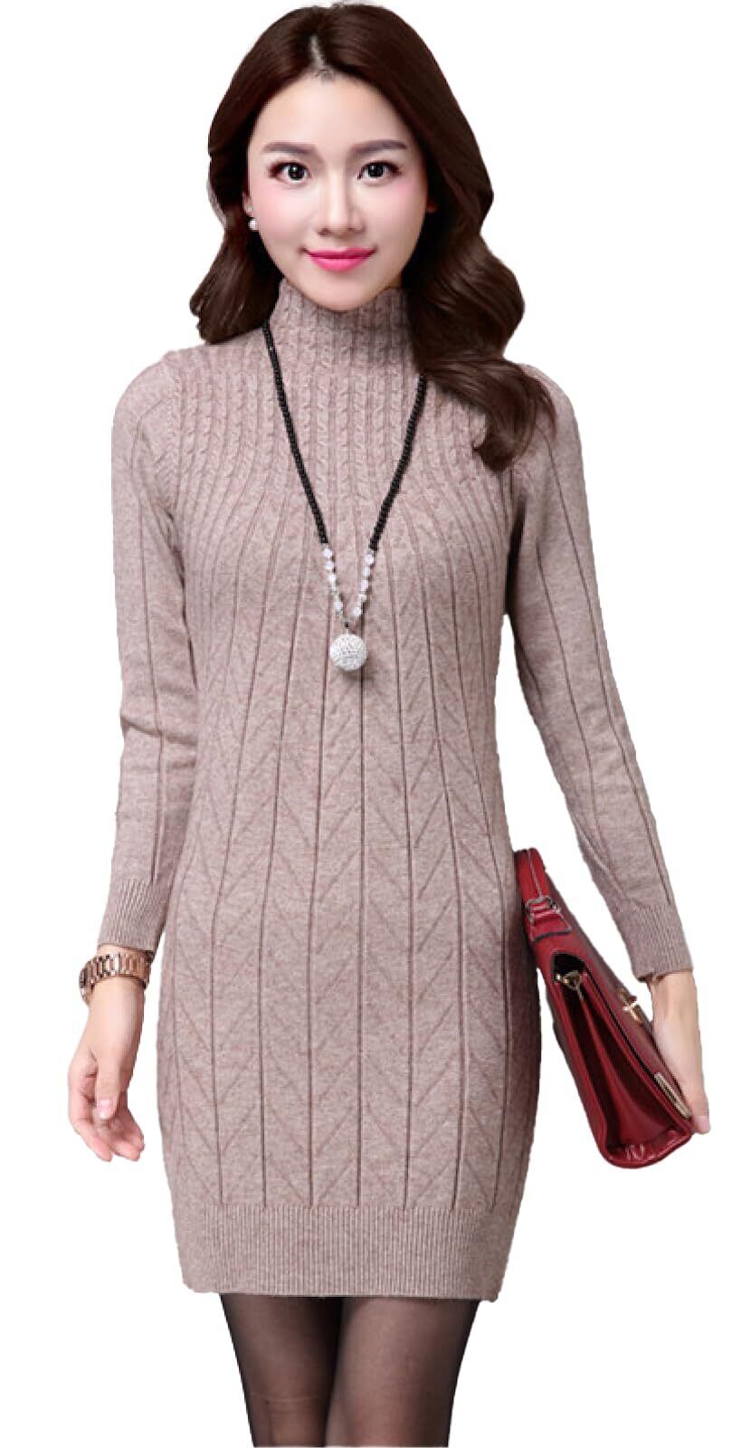 [WesRiva] ワンピース 長袖 トップス 無地 レディース ミニ丈 シンプル ニット