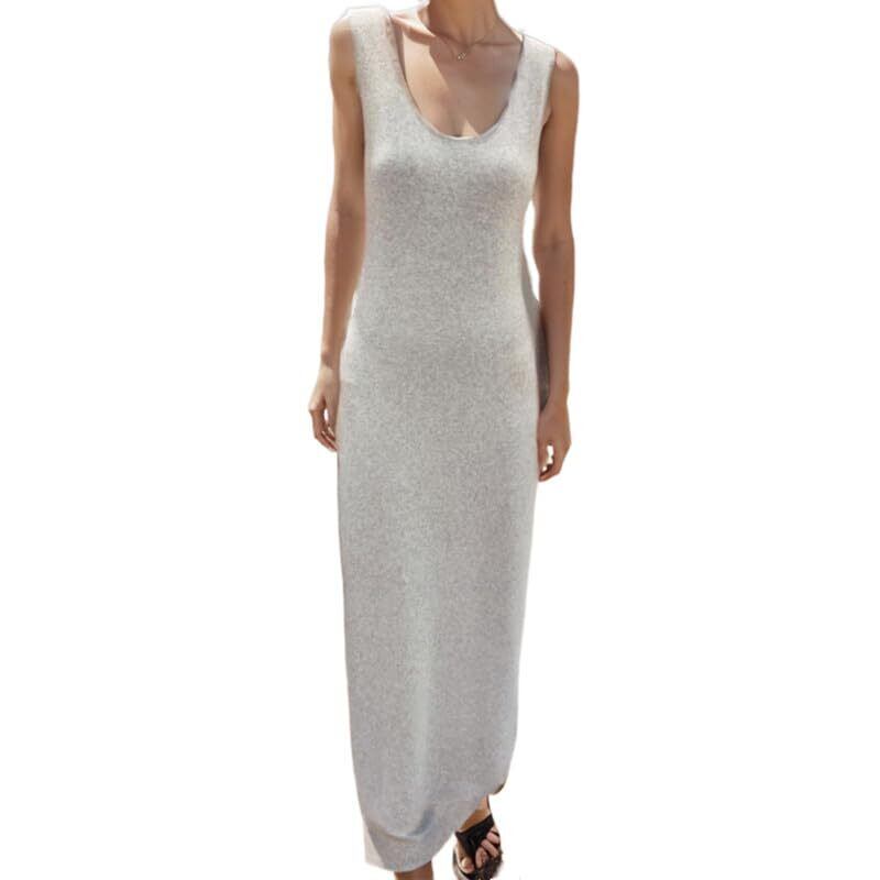 ロング丈のニットワンピース、シンプルなデザイン、サラサラとした着心地、サラデマントのこだわり。