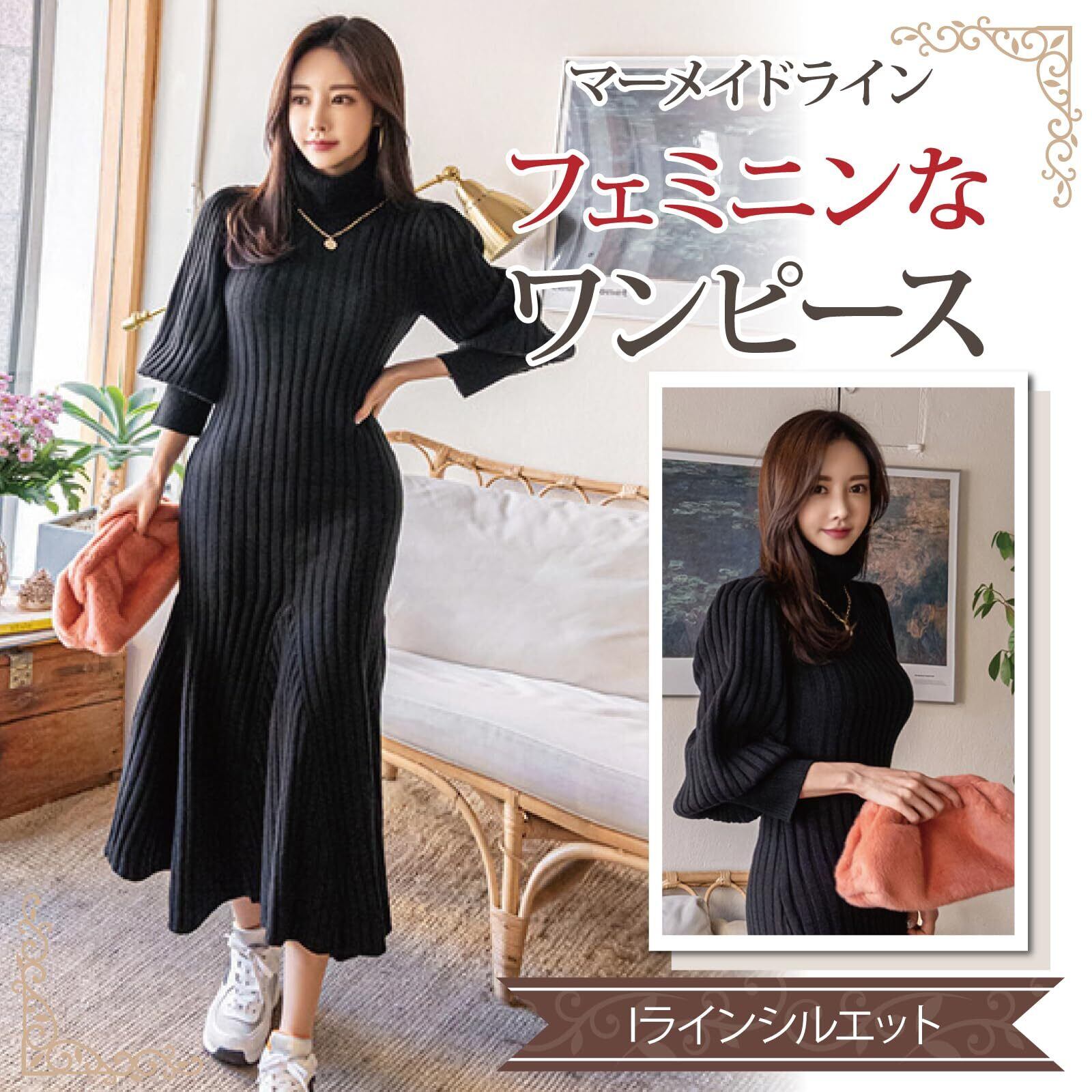 マーメイドラインで揺れる裾がフェミニンなロングワンピース(キャバドレス・CABARETDRESS)。女性らしさを引き立たせるリブニットのマーメイドワンピース。リブ編みが縦のラインを強調し、スタイルアップをアシスト。少し丸みを持たせた袖に手首のしまったリブがメリハリをきかせ、気になる二の腕もうまくカバーしてくれます。もっちり感のある程よい肉感のニットを使用しているので、身体のラインを露骨に拾わずすっきりとしたIラインシルエットに。裾はフリルデザインで動きに合わせてフリルがゆれて素敵です。