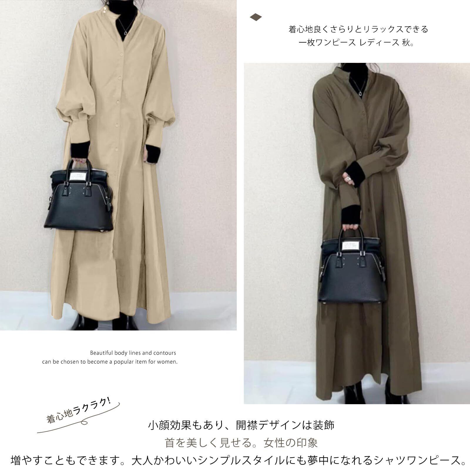 【開襟レディース ワンピース】ルーズに着こなせるシャツワンピースが登場!着心地良くさらりとリラックスできる一枚ワンピース レディース 秋。ふわっとしたボリューム袖や体のラインを拾わないゆったりとしたシルエットがポイントのワンピース。サイドにポケットが付いているのも嬉しいポイント。オフィスやお出かけデートなどはもちろん大人っぽくもカジュアルにも使える大人気のワンピース。