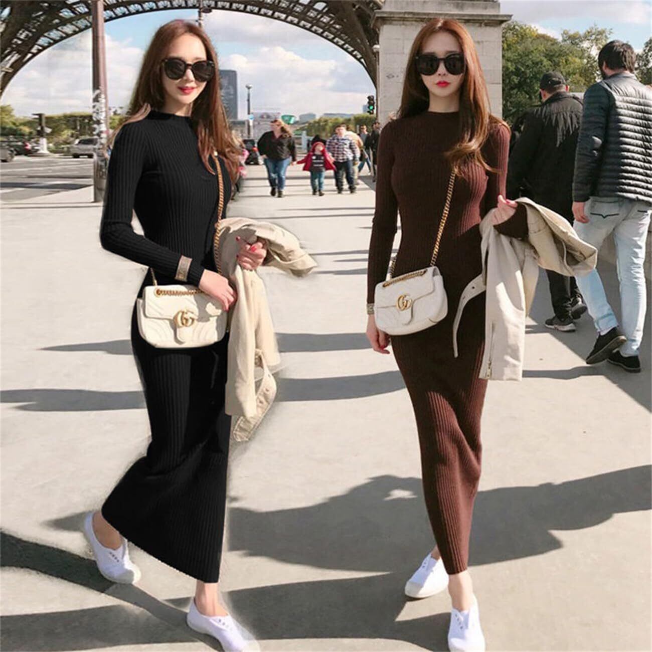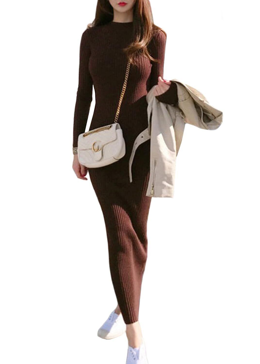 Newsight ニット ワンピース 着やせ レディース ロング丈 お洒落 スリム タイト 半タートルネック 長袖 厚手 きれいめ エレガント 秋 冬