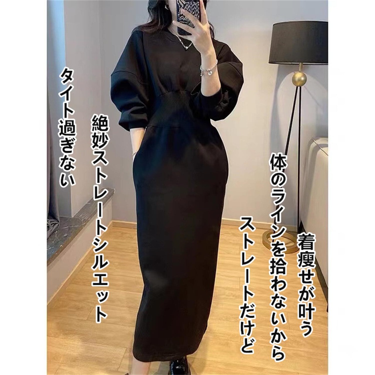 【在庫セール】[kisetsumate] ワンピース レディース 秋 ロングワンピース 秋冬 春 クルーネック ウエストデザイン ストレート 着痩せ 秋ワンピ 骨格ナチュラル ワンピ きれいめ トレンド 人気 | BOSSO