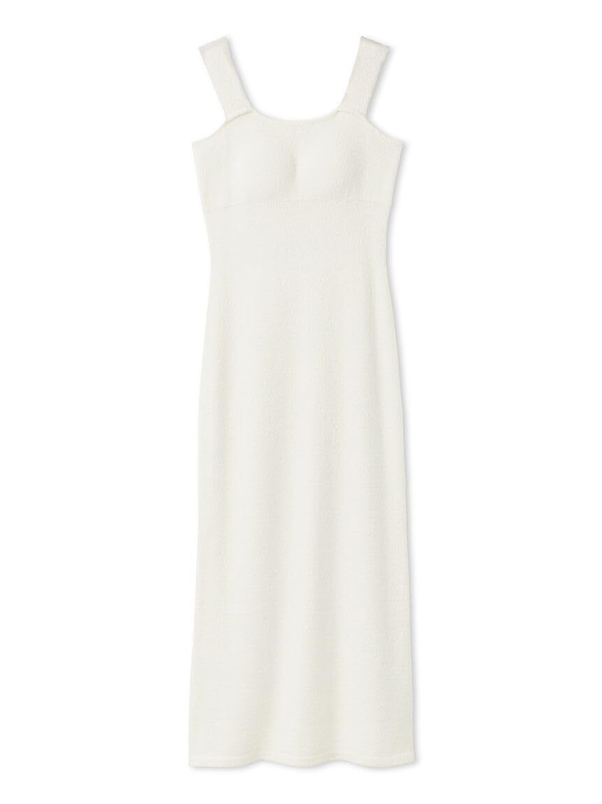 毛足の短い、なめらかなニットの肌触りを楽しむタンクデザインのワンピースです。