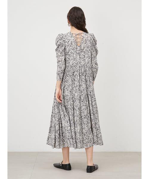 オリジナルのフラワープリントが印象的な総柄ワンピース。細かなギャザーが立体感を与え、シルエットが美しいティアードデザインと、裾が広がりすぎずまとまってくれるナローフレアで、計算された大人の女性らしさを演出。ウエスト切替は高めに設定し、スタイルアップが期待できます。デコラティブなスリーブデザインと背中の編上げデザインが、他にない1着。肩幅が気になる方でも着やすいようギャザースリーブにこだわりました。インナーキャミソール付きなのも嬉しいポイントです。