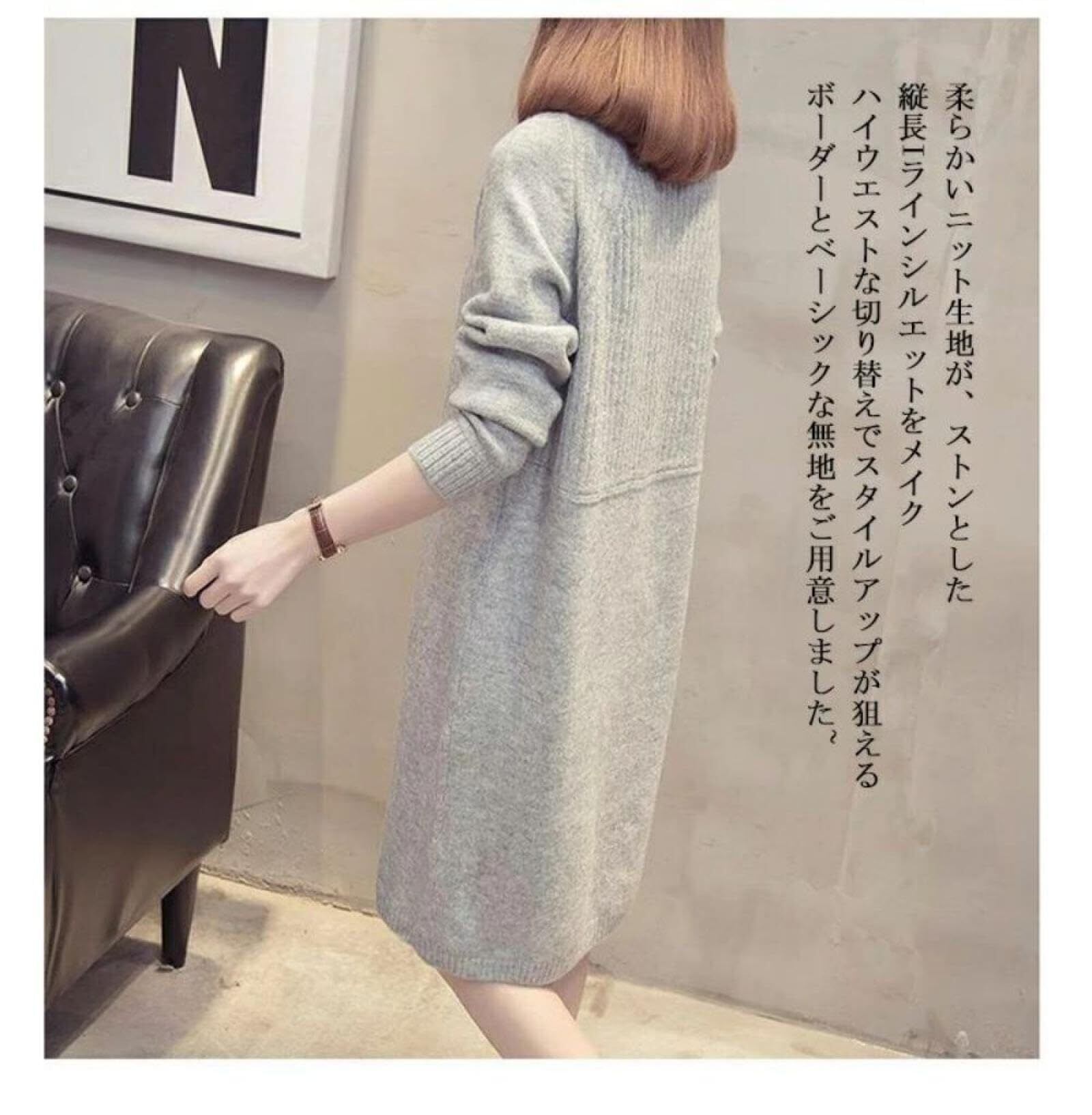 ワンピース ニットワンピース チュニック レディース ワンピース リブニット セーター ロングワンピース カットソー ロングニット 冬物 無地 あったかい 膝丈 長袖 ニット インナー チュニック ニットソー ワンピース トップス 秋冬 XL ライトグレー