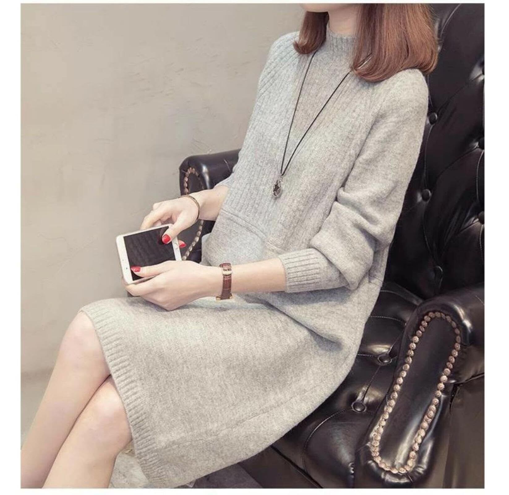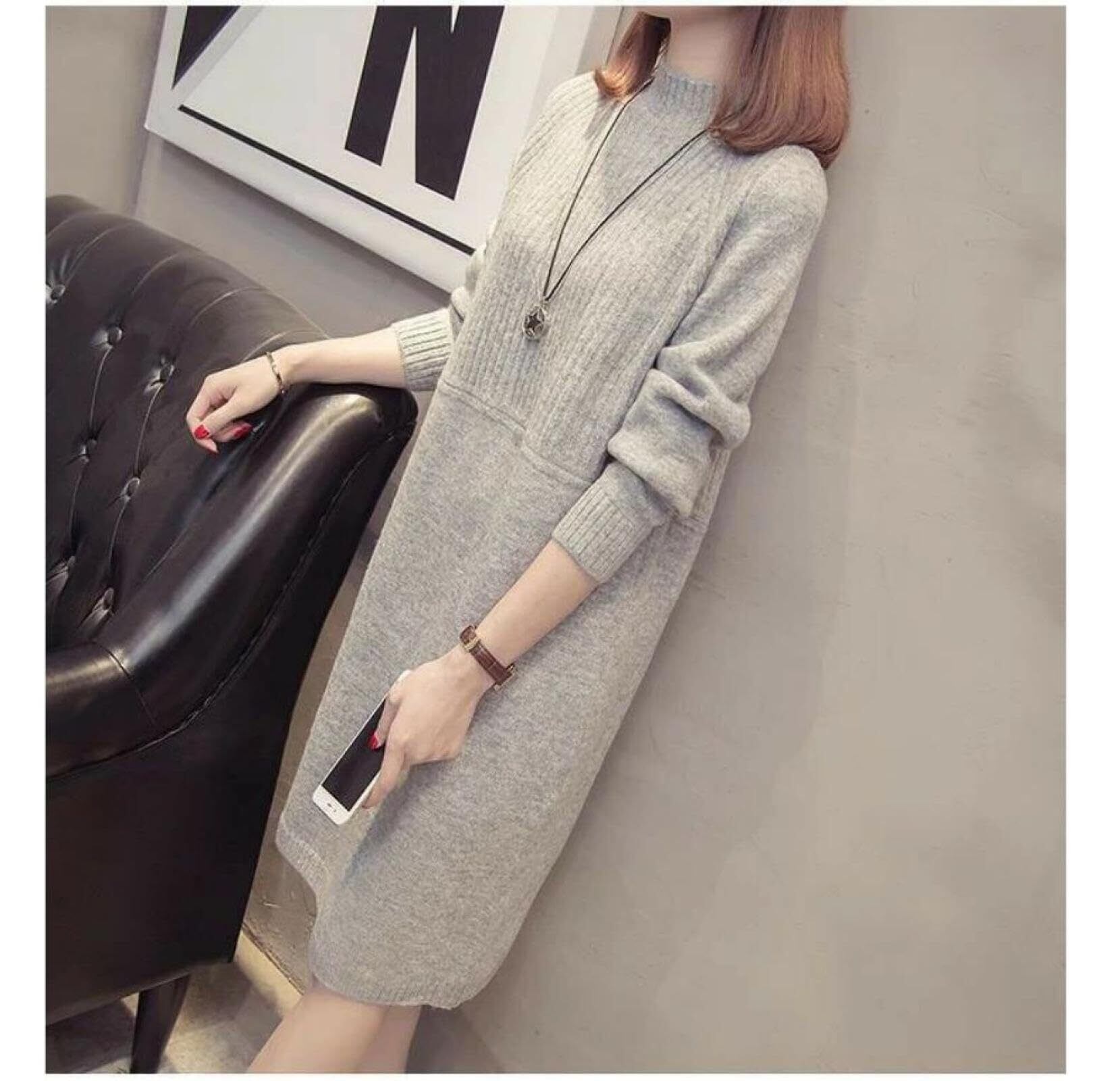 【特価商品】ワンピース ニットワンピース チュニック レディース ワンピース リブニット セーター ロングワンピース カットソー ロングニット 冬物 無地 あったかい 膝丈 長袖 ニット インナー チュニック ニットソー ワンピース トップス 秋冬 XL ライトグレー | BOSSO