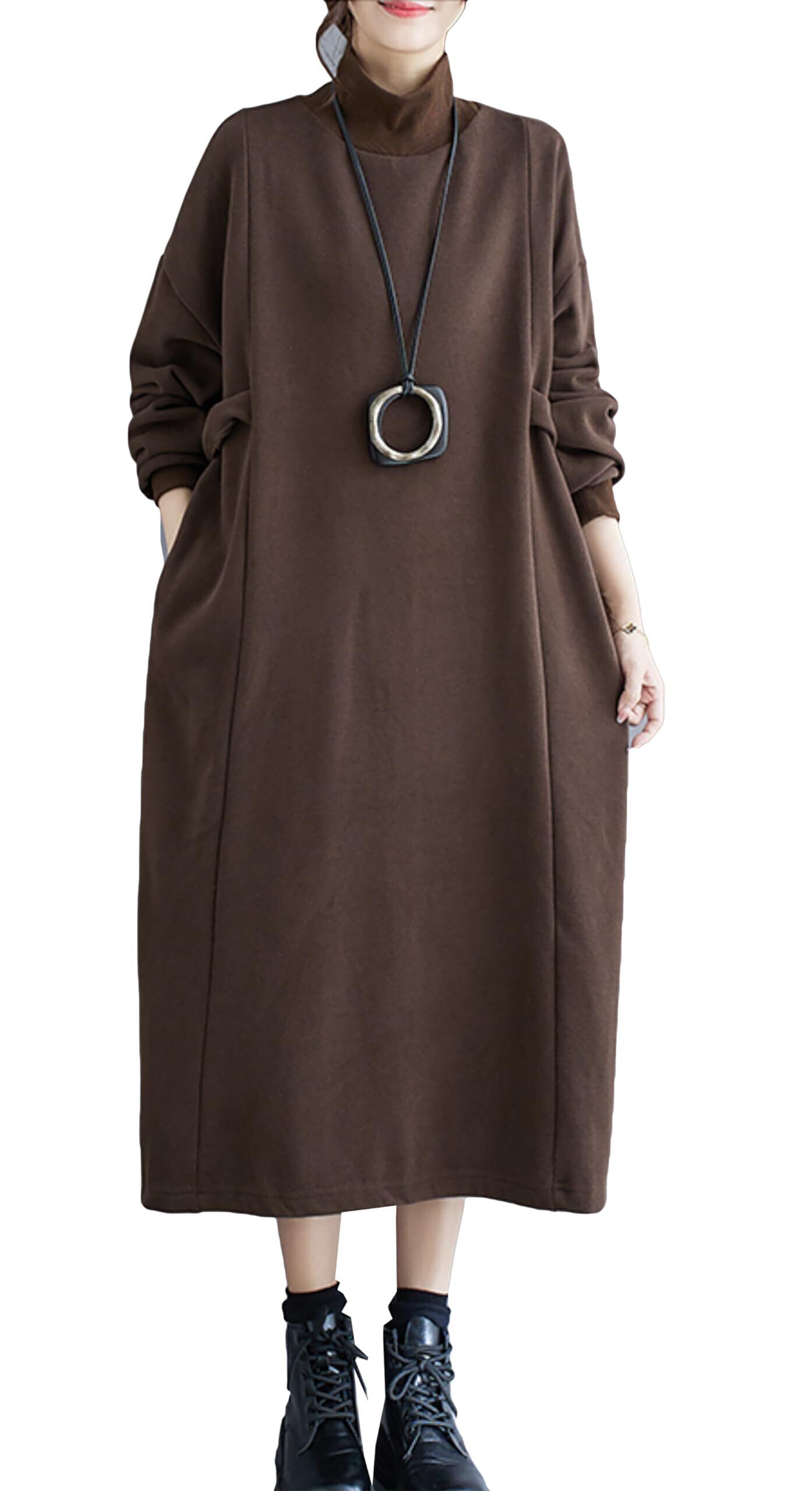 【2022最新】[MMTYRM] ロング ワンピース 秋 冬 ゆったり マキシ ワンピース オーバーサイズ タートルネック カジュアル ワンピース 厚手 ドレス ビックシルエット チュニック aライン ワンピース エレガント | BOSSO