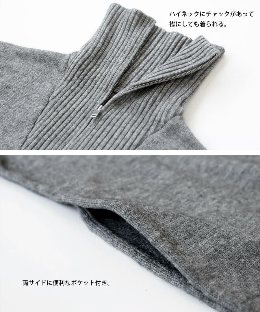 ≪DETAIL≫・こなれ感のあるチャック付きのハイネック。・メリハリのある袖口のリブ切り替え。・大人可愛いドロップショルダー。・足元のお洒落も楽しめる絶妙丈。・リラックス感のあるゆったりサイズ。・ロングでも足さばき楽ちんなスリット入り。・便利な両サイドポケット付き。≪FABRIC≫・ふわっと柔らかい心地よい肌触り。・上質なアルパカタッチの極上ニット素材。≪COLOR≫ブラック、杢グレーの2色展開。≪SIZE≫フリーサイズ。