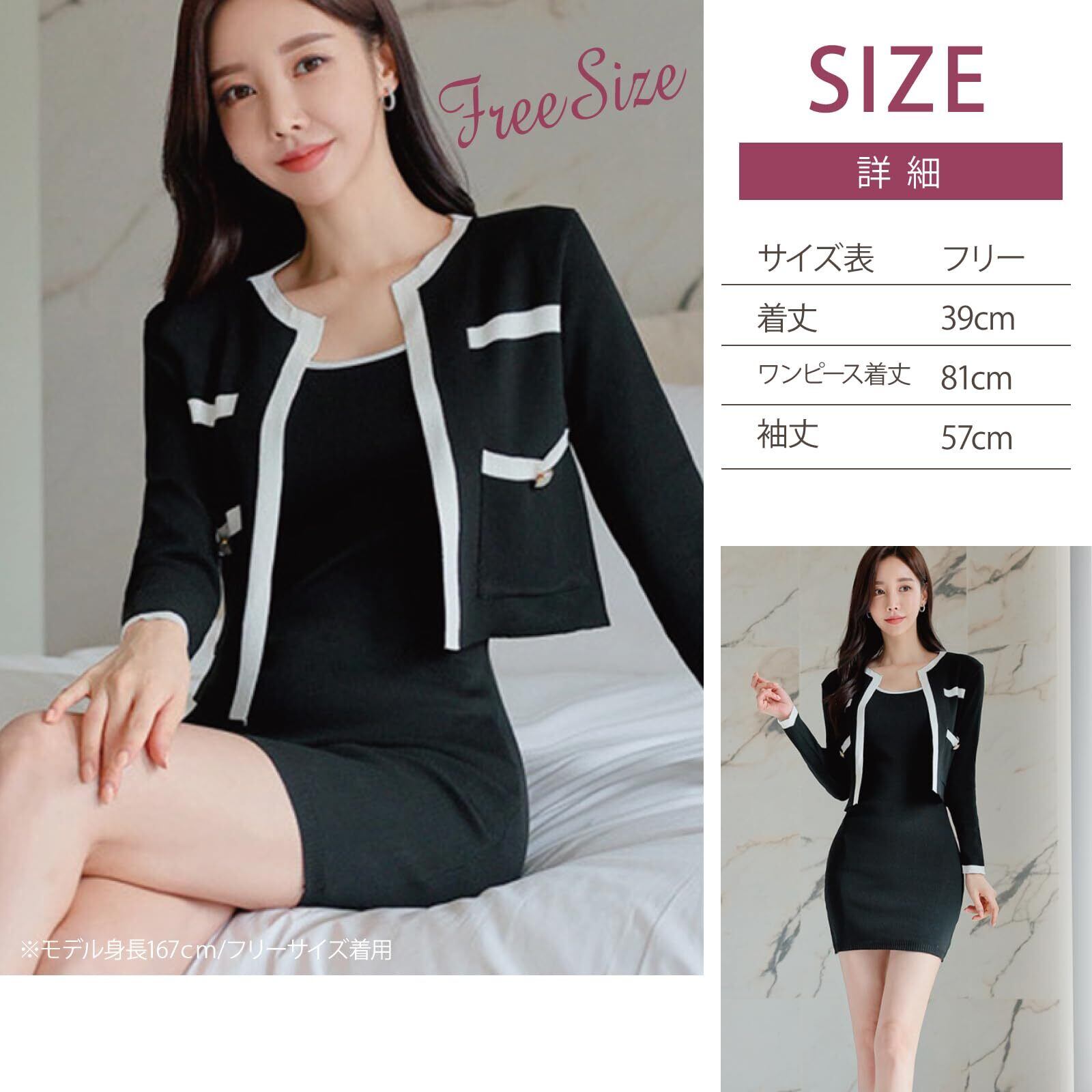 バイカラーニットミニワンピース(キャバドレス・CABARETDRESS)。セットでもセパレートでも着回し自由なニットワンピは程よくボディにフィットししなやかな着心地。カーデのポケットに付いた光沢感あるボタンがスタイリッシュなイメージを与えてくれます。