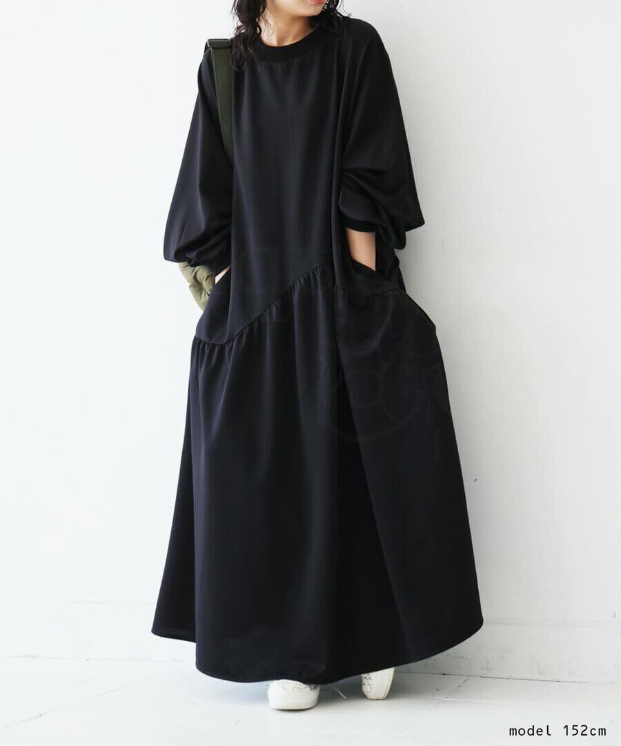 伸縮性があり楽に着用できるポンチ素材を使用した上品ギャザーワンピース。トレンドのスポーティーさも演出し、幅広いテイストに合う万能なアイテム。