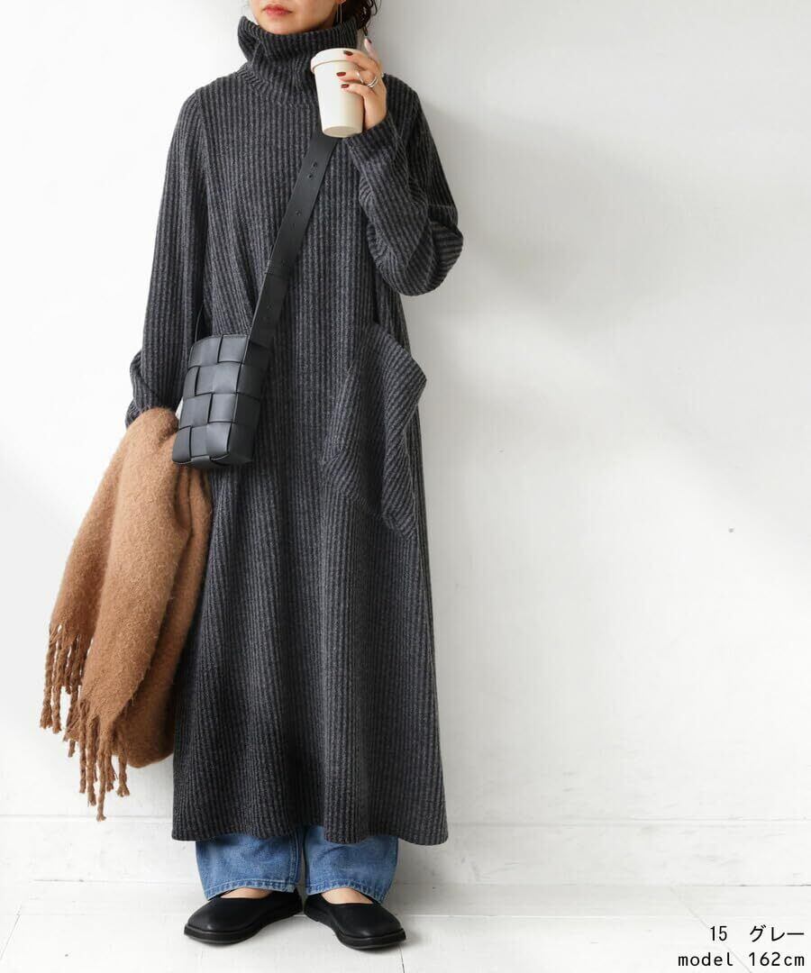 この1枚でゆるっとこなれた印象にしてくれる。大人コーデの万能アイテム『タートルニットワンピース』