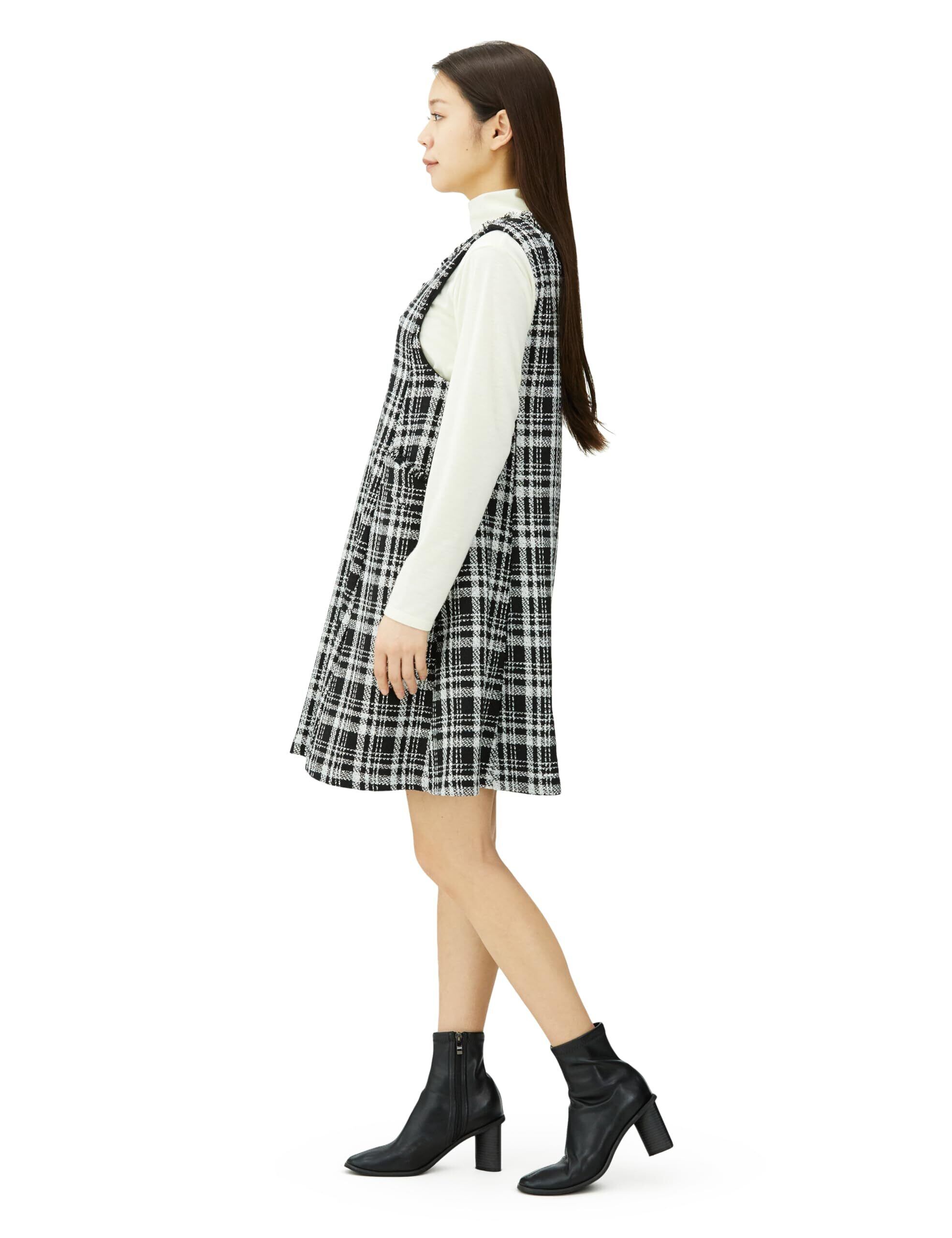 [ミッシュマッシュ] カジュアルドレス パール付きツイードジャンスカ/MM337420 BLACK S レディース