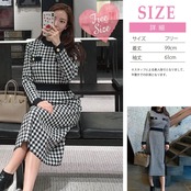 [GRAXIA] 【グラシア】キャバドレス ミディアムドレス ニットワンピース キャバ嬢 キャバクラ ラウンジ 長袖 クルーネック チェック柄 千鳥格子 スリット ミモレ丈 膝丈 レディース
