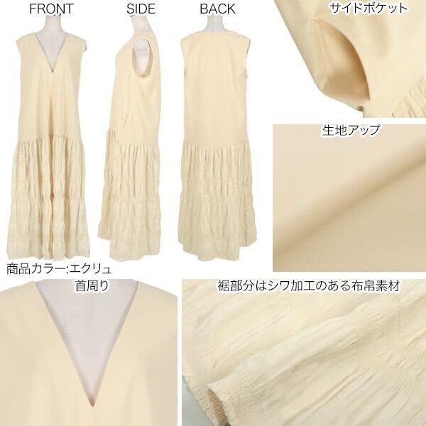 [神戸レタス] Vネック 切替 ジャンスカ ワンピース レディース 体型カバー ゆったり ティアード ワンピ [E3366]