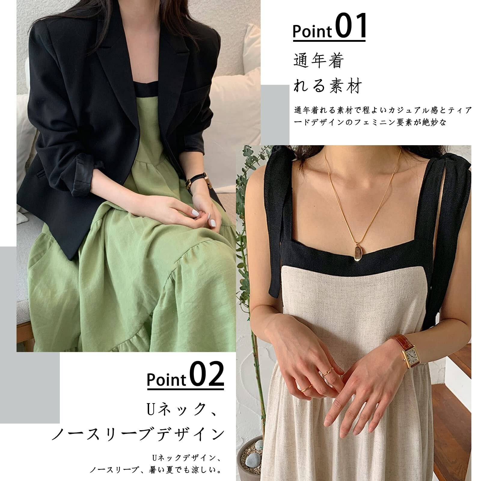 [AUSKY] 上質 レディース ワンピース ロング キャミワンピース ノースリーブ ティアード フレアワンピース 肩出す ゆったり シンプル カジュアル エレガント 涼しい 体型カバー おしゃれ 学生 大人 春 夏 秋 通勤