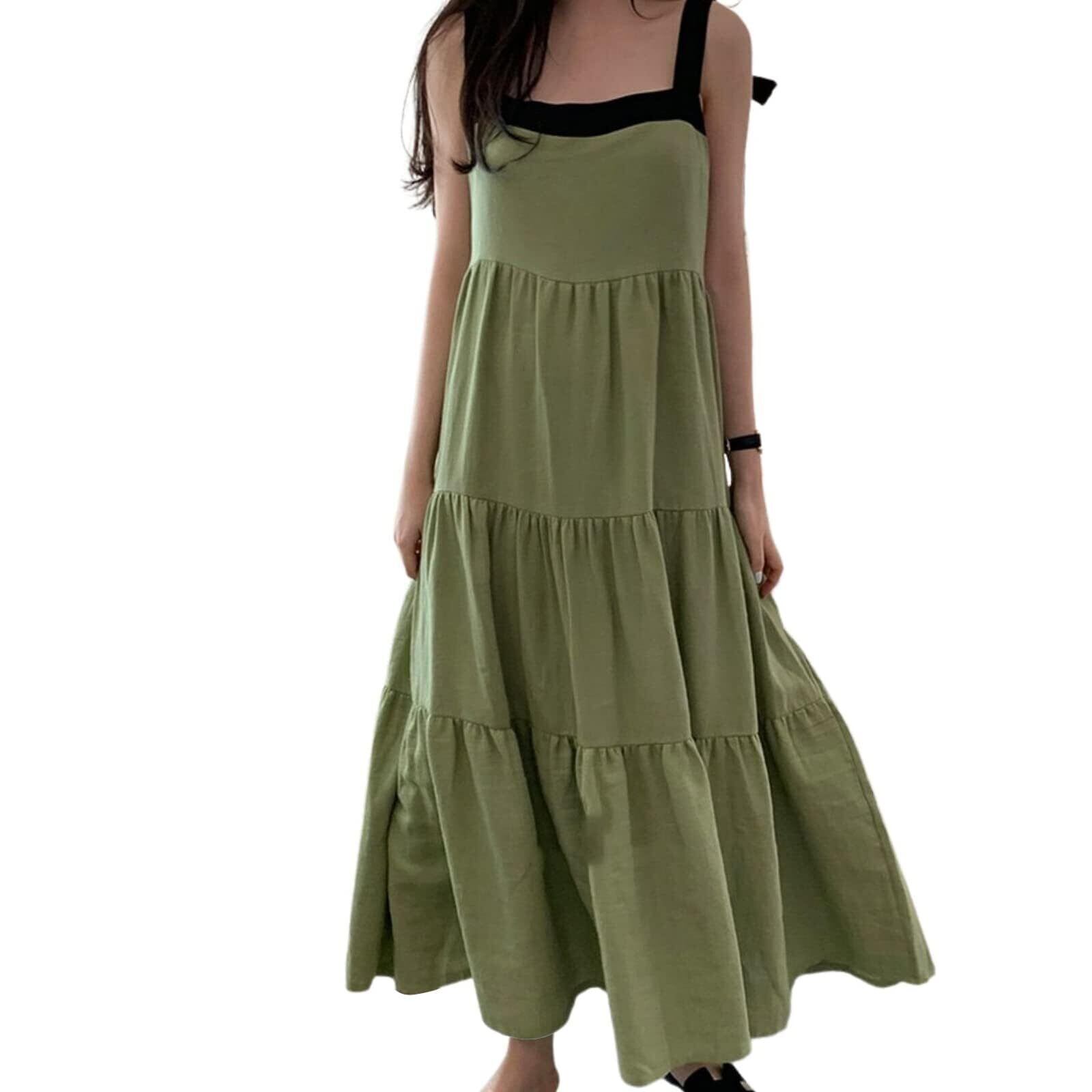 【新着商品】[AUSKY] 上質 レディース ワンピース ロング キャミワンピース ノースリーブ ティアード フレアワンピース 肩出す ゆったり シンプル カジュアル エレガント 涼しい 体型カバー おしゃれ 学生 大人 春 夏 秋 通勤 | BOSSO