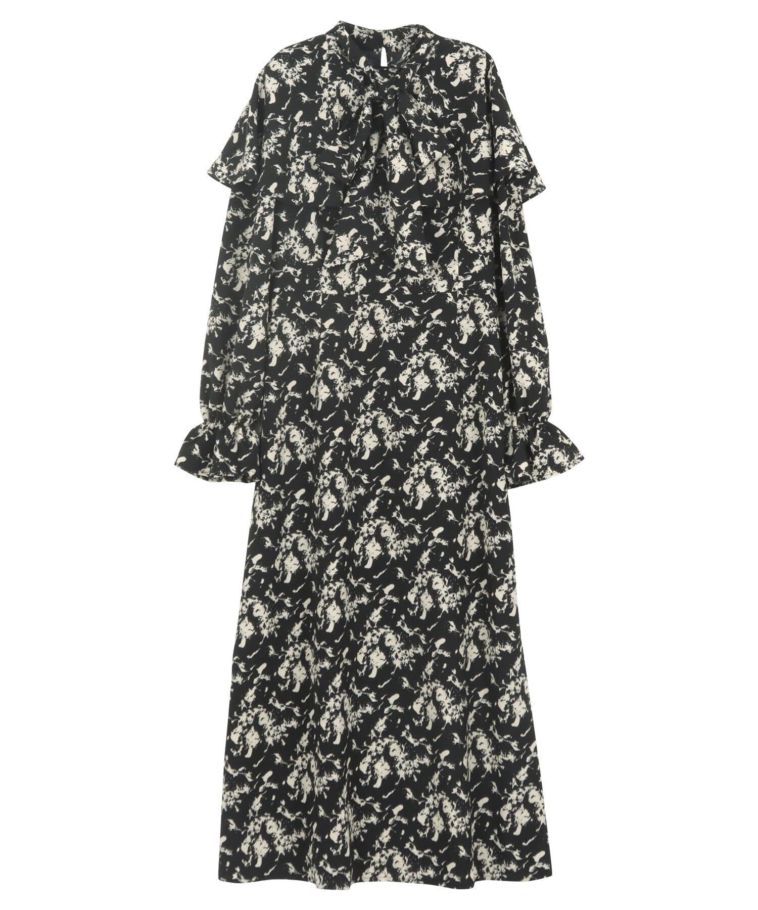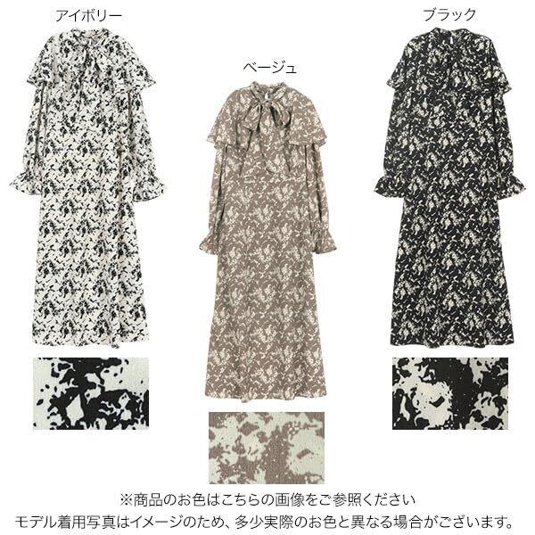 [神戸レタス] 花柄ケープデザインワンピース オケージョン ランチ お出かけ 長袖 きれいめ ビック襟 フラワー柄[E3373]