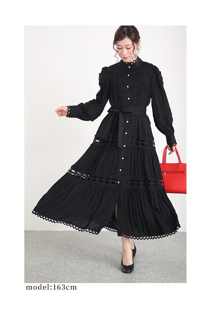 美しいカットワークのレースを施したフェミニンなワンピ。