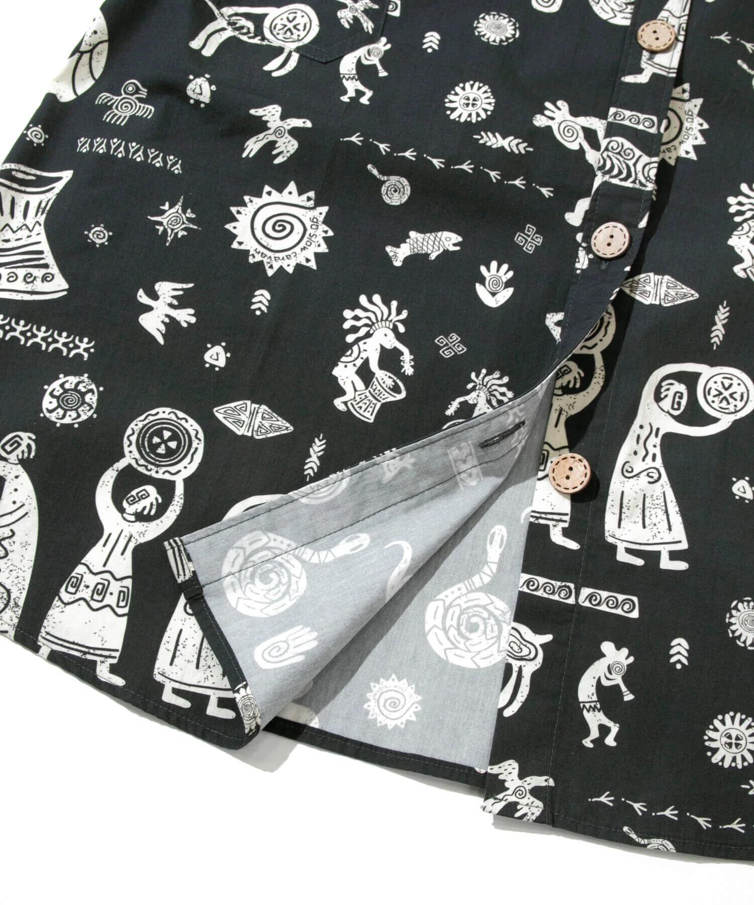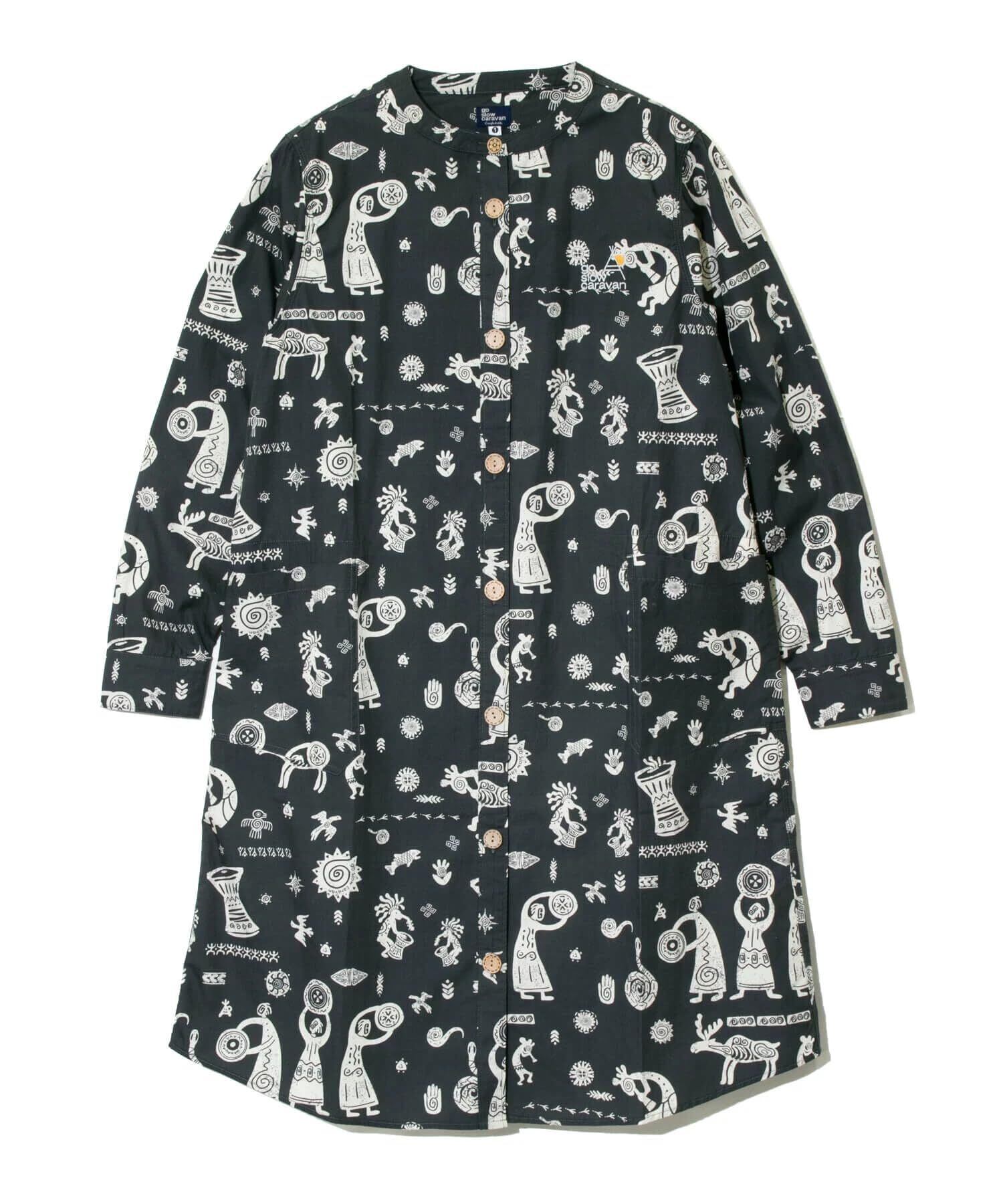 [go slow caravan] オリジナル総柄Ptノーカラーシャツワンピース