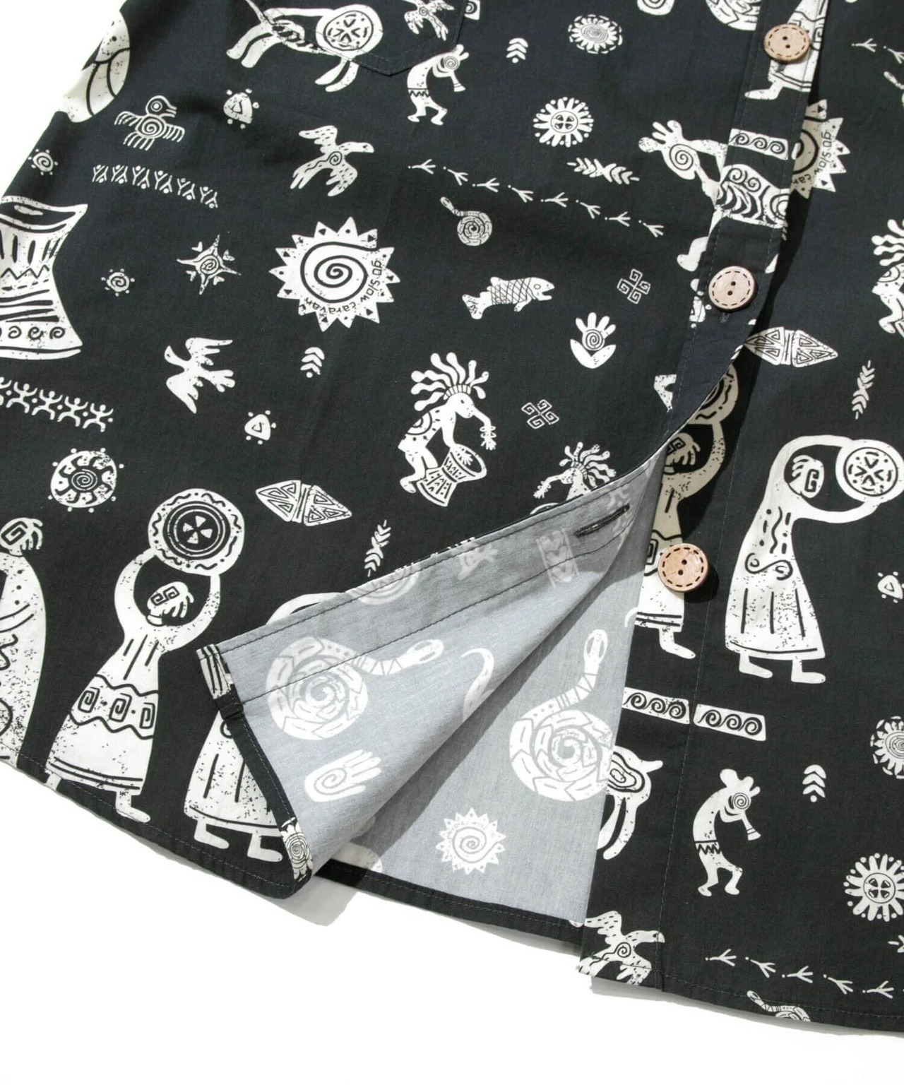 オリジナルの【民族祭り柄】と【CAMP FRIENDS柄】の2柄をご用意。うれしいサイドポケット付き。