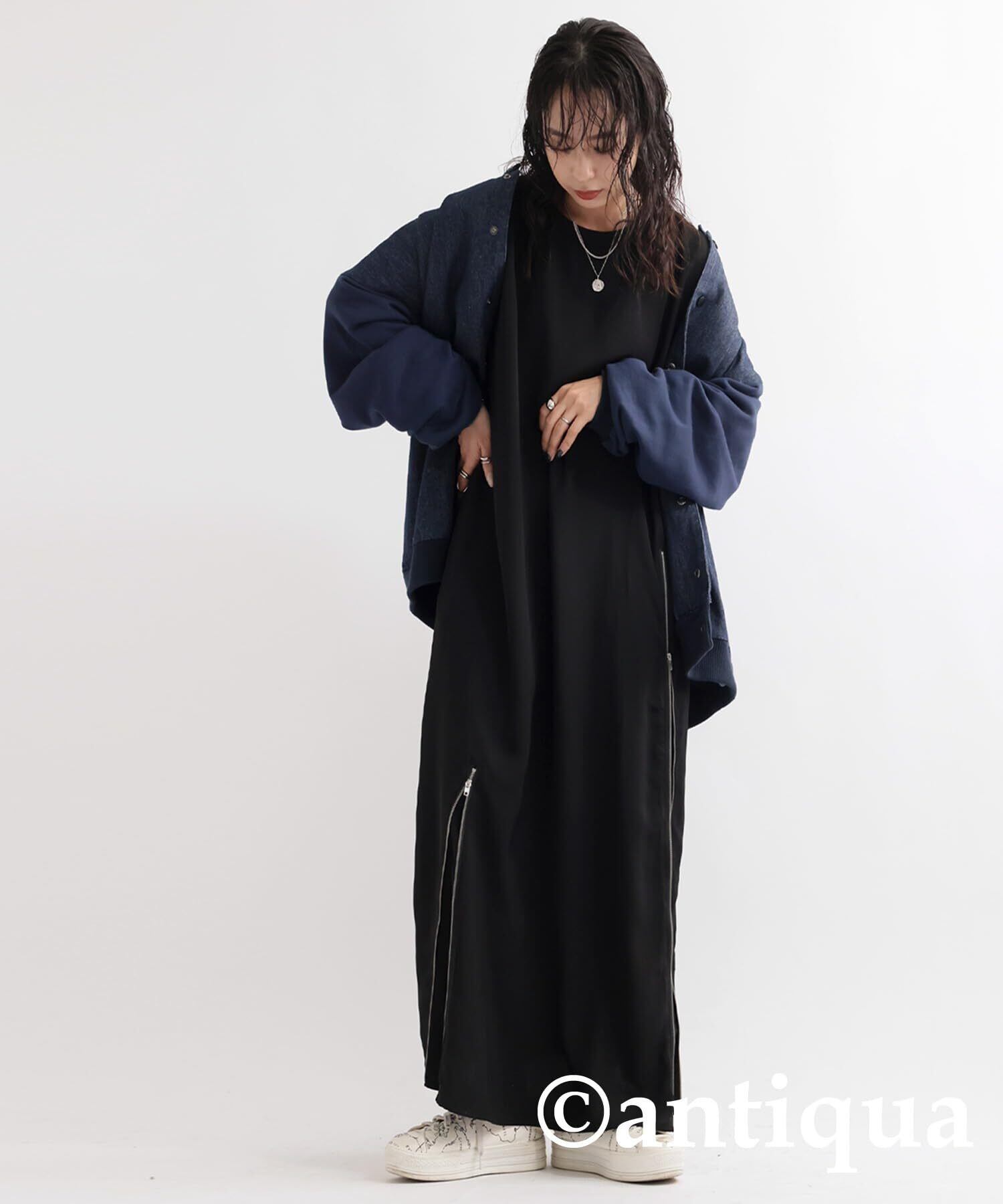 [antiqua] [アンティカ] ワンピース レディース ロング 長袖 無地 PY-00709