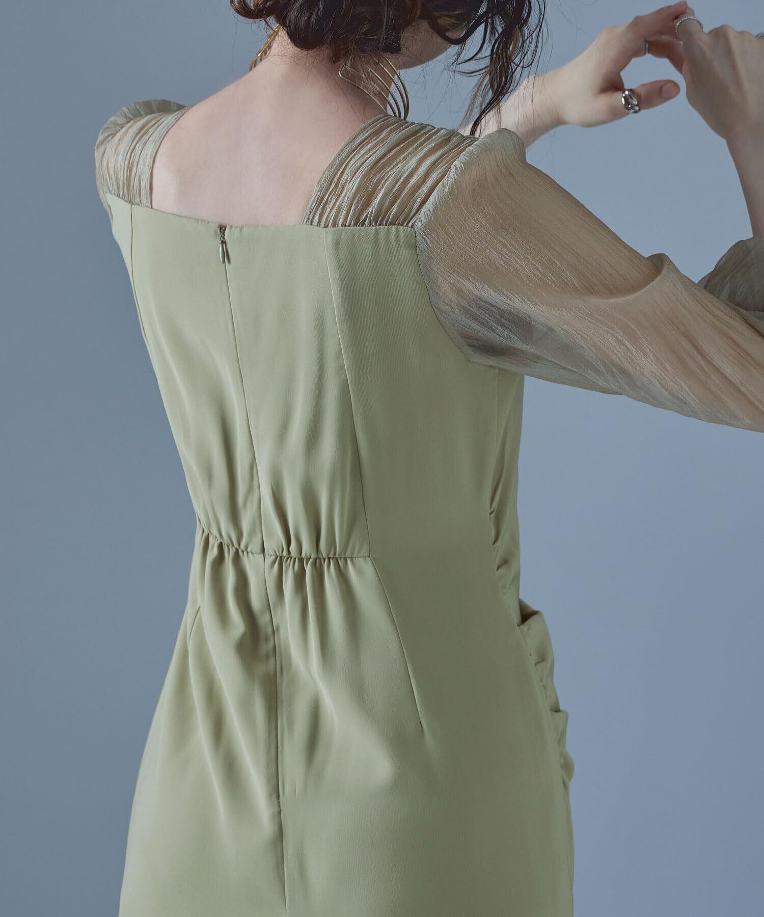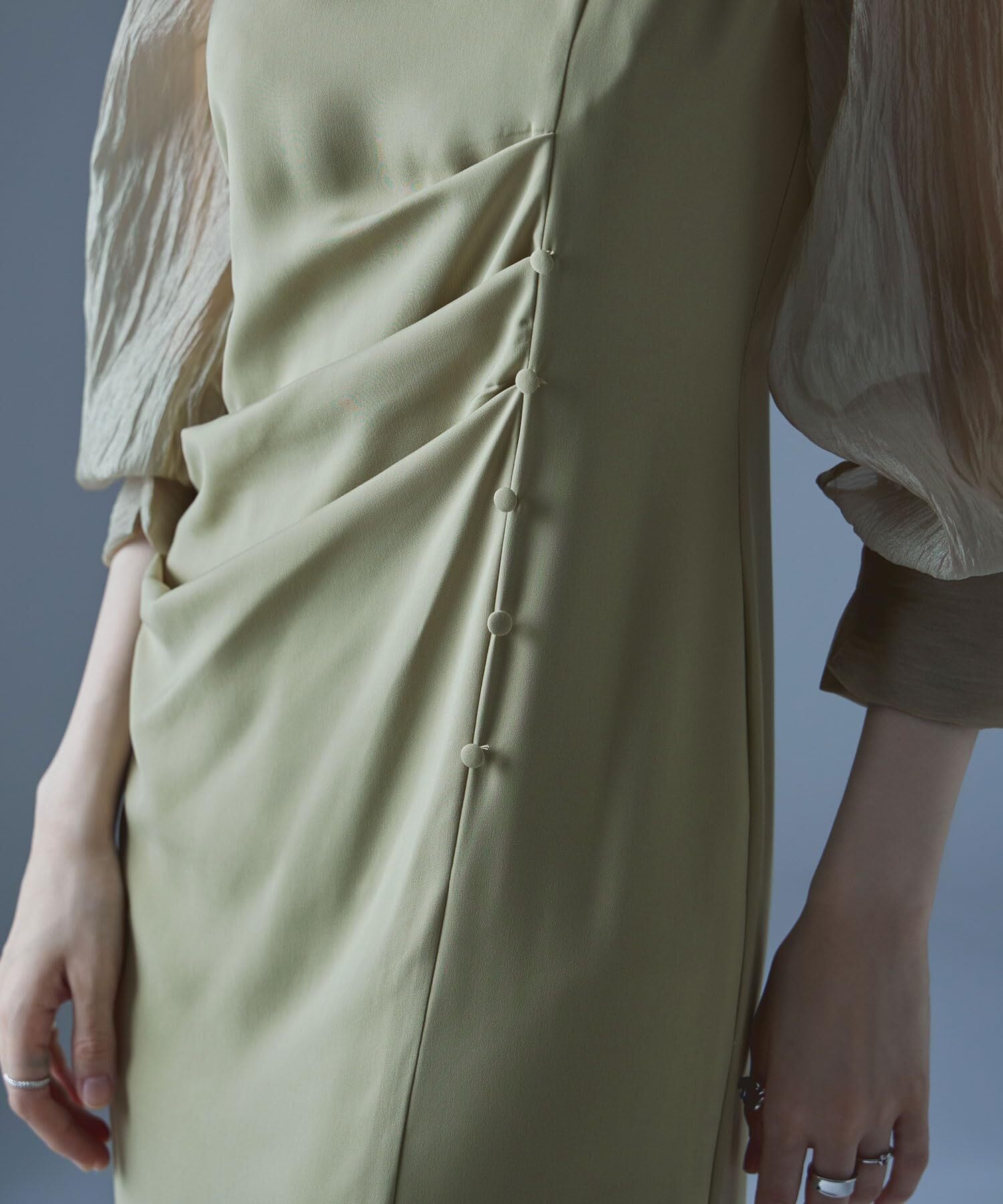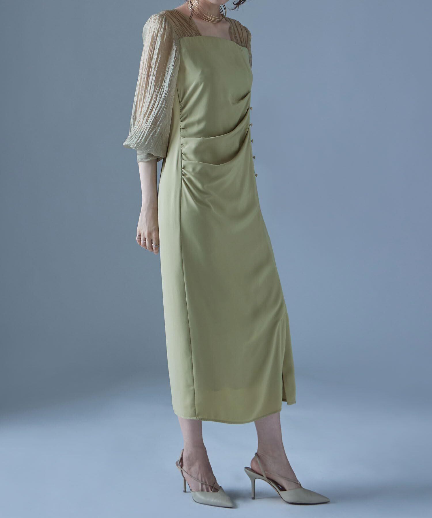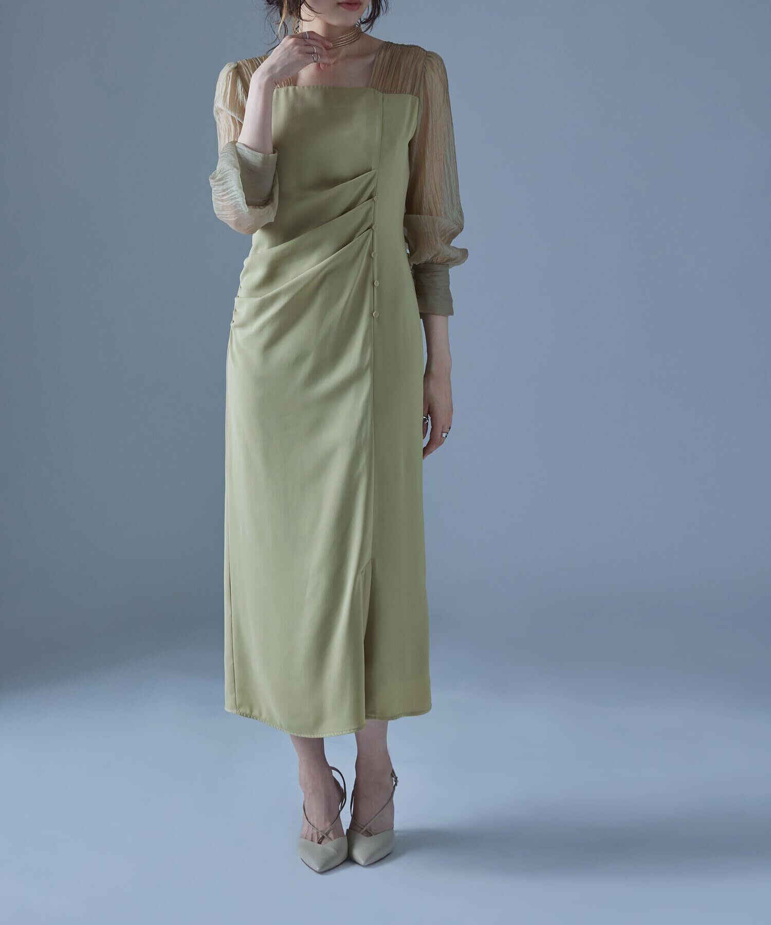 [etoll] ドレープデザインIラインドレス ワンピース ワンピ ドレス 長袖 オケージョン