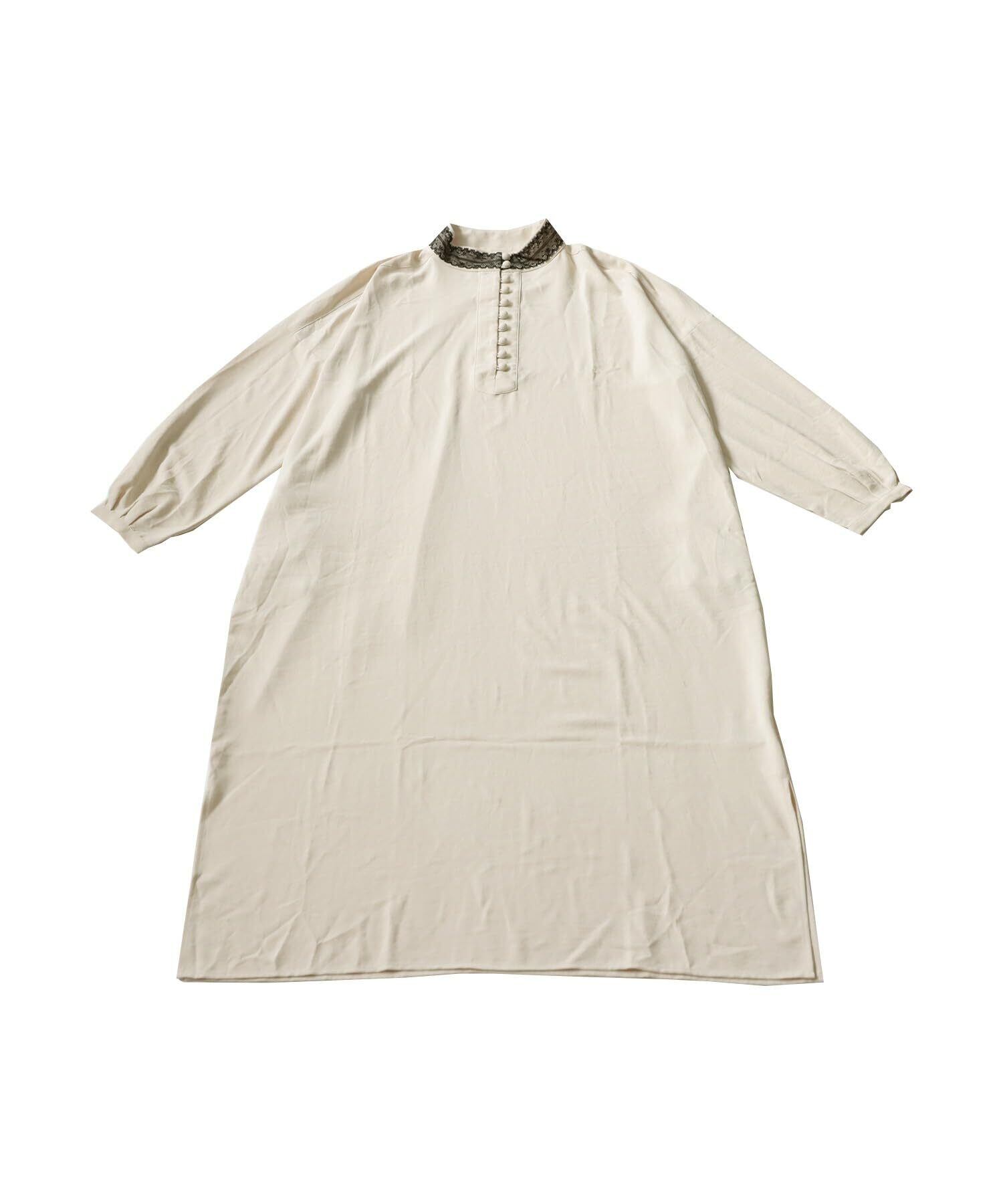≪DETAIL≫・大人可愛いネックのレースデザイン。・華奢見せ叶うゆったりサイジング。・顔周りがすっきり見えるネックライン。・こなれ感のあるドロップショルダー。・ナチュラルな風合い漂うクルミボタン。・足さばき楽ちんな裾スリット入り。
