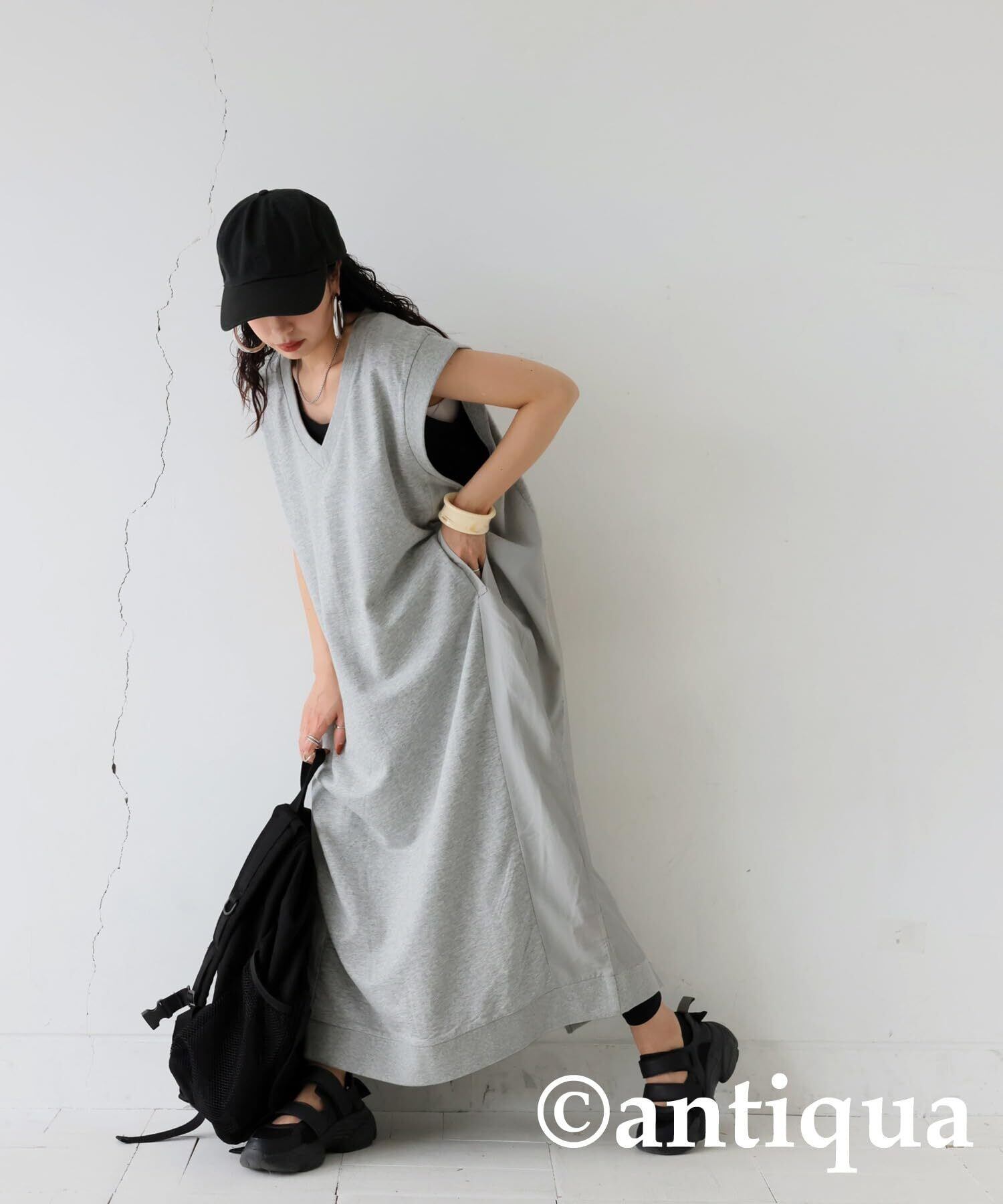 [antiqua] [アンティカ] ドッキング ワンピース レディース ロング PN-00464